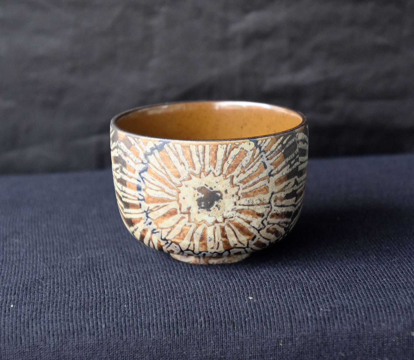 Royal Copenhagen, lille bæger 870/3734, kunstfajance, Bægeret er dekoreret med brunligt mønster udvendig og indvendig helt lysebrunt