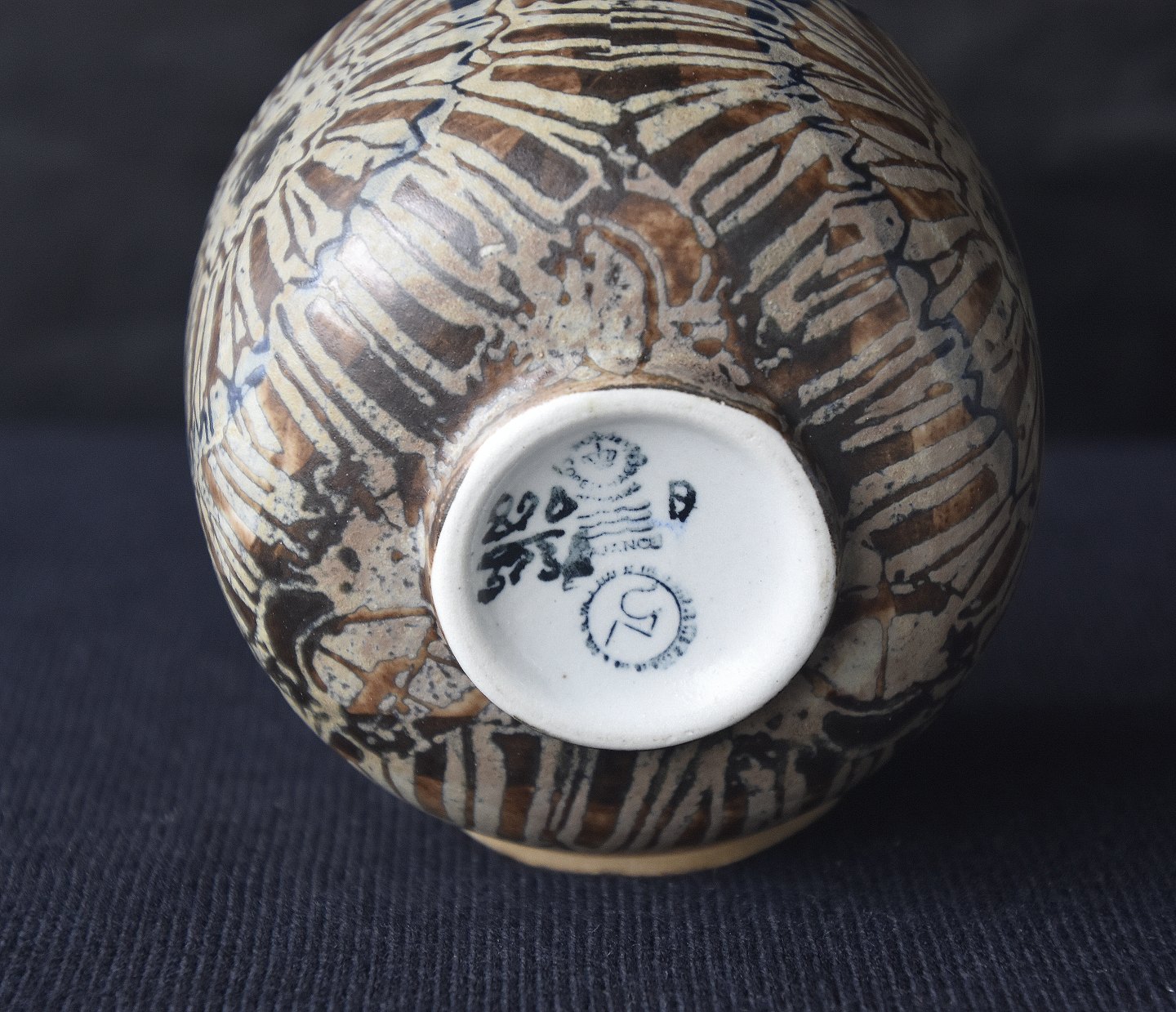 Royal Copenhagen, RC, Den Kongelige Porcelænsfabrik, KGL., kunstfajance, brunt mønster, lysebrun