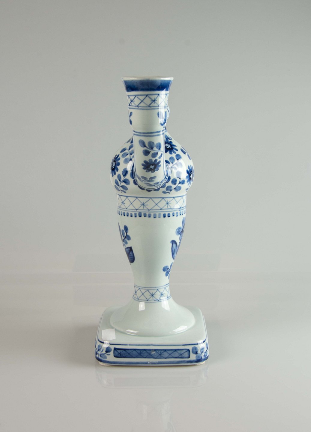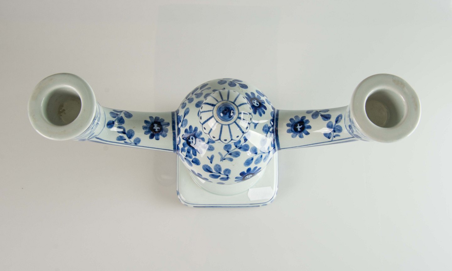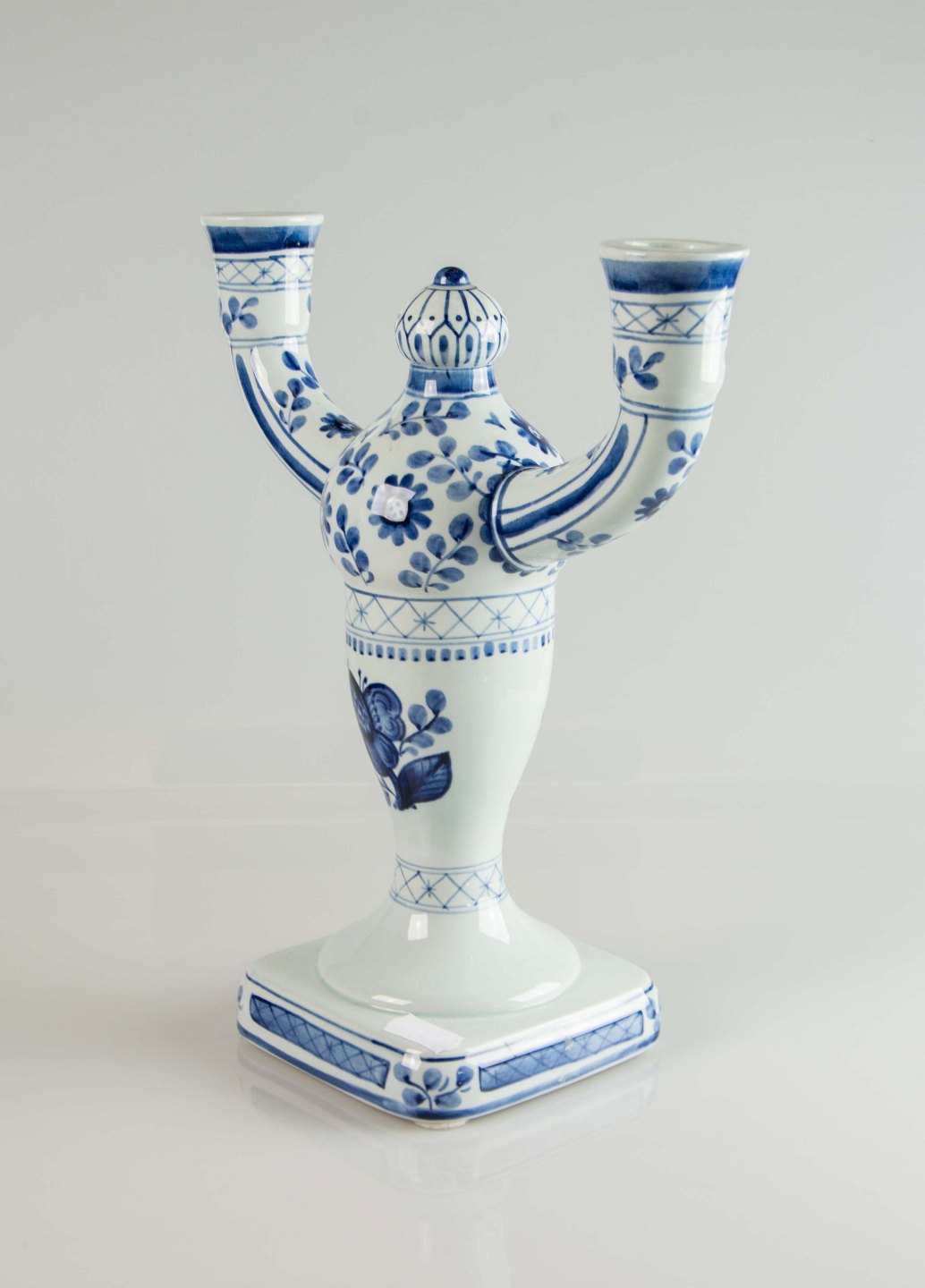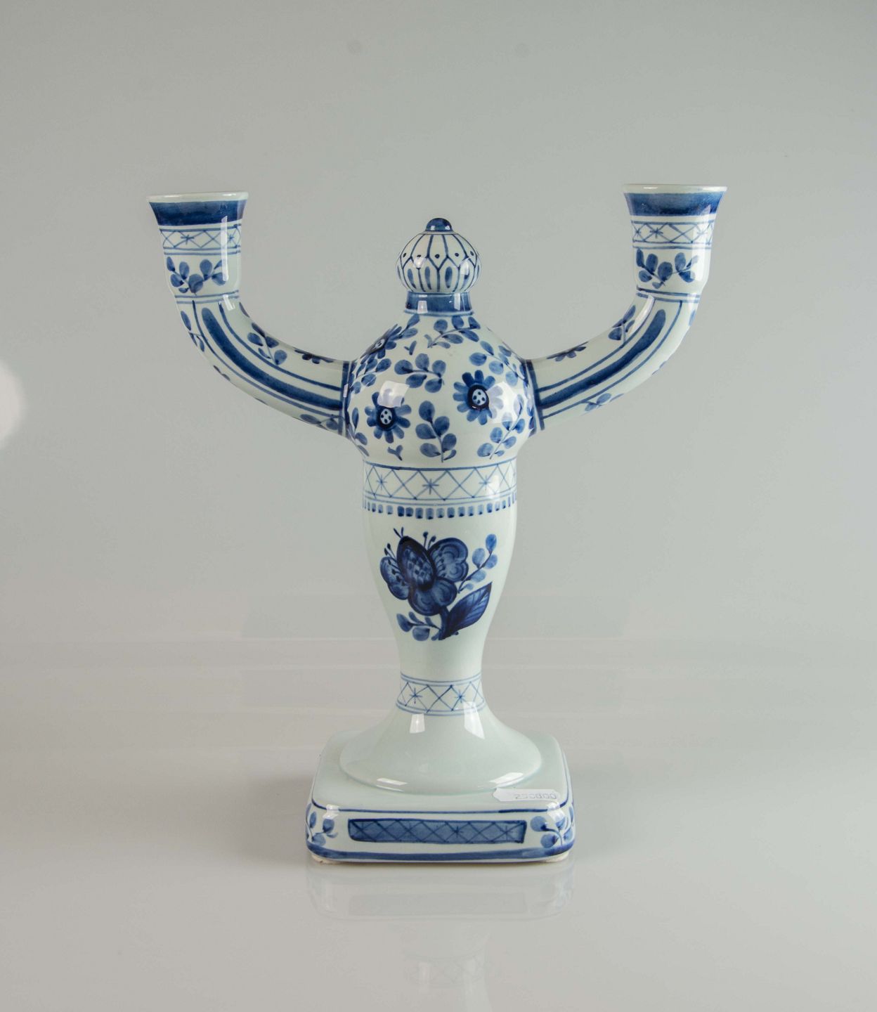 To-armet lysestage i fajance fra serien blå Tranquebar nr. 3037/919