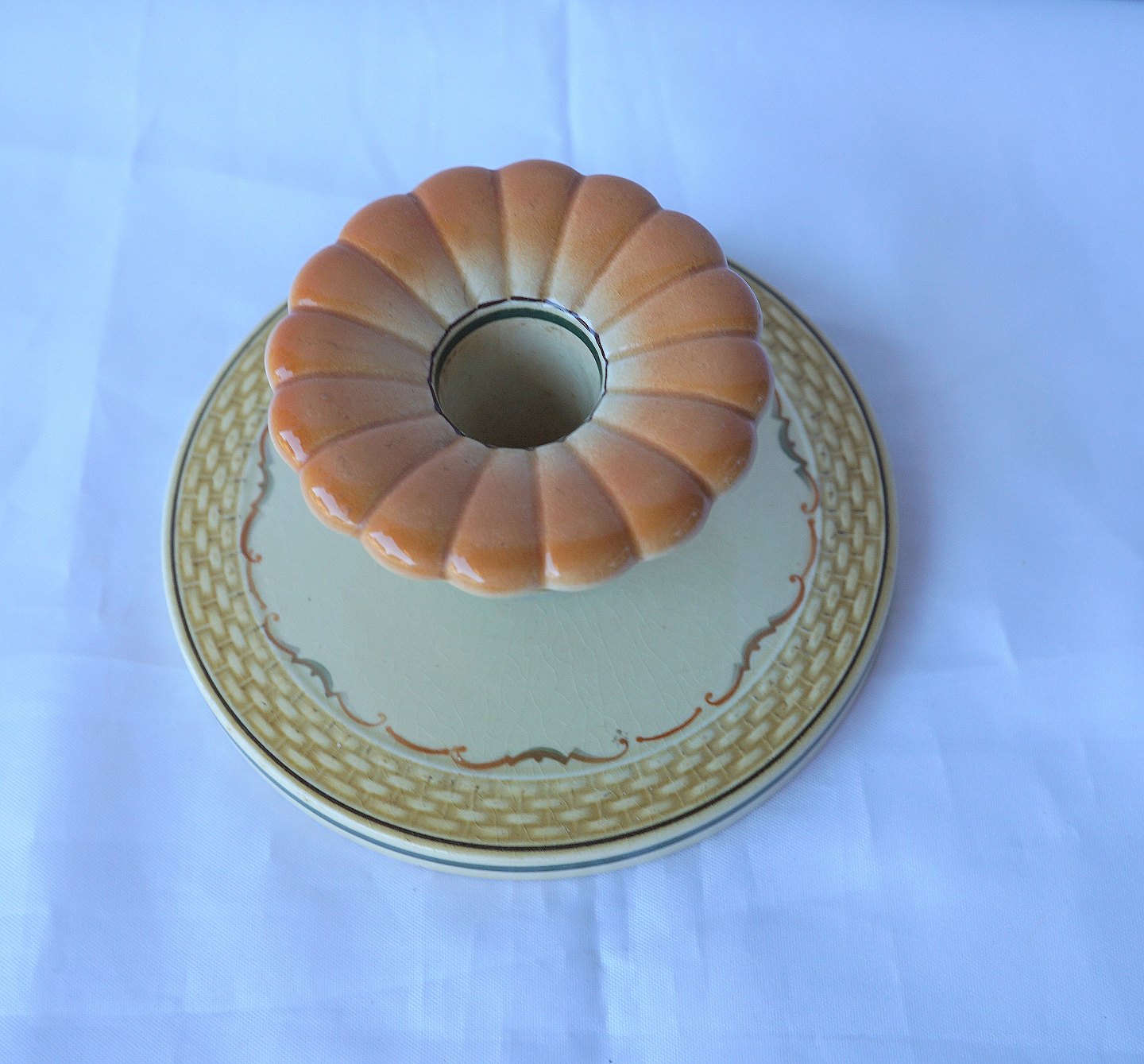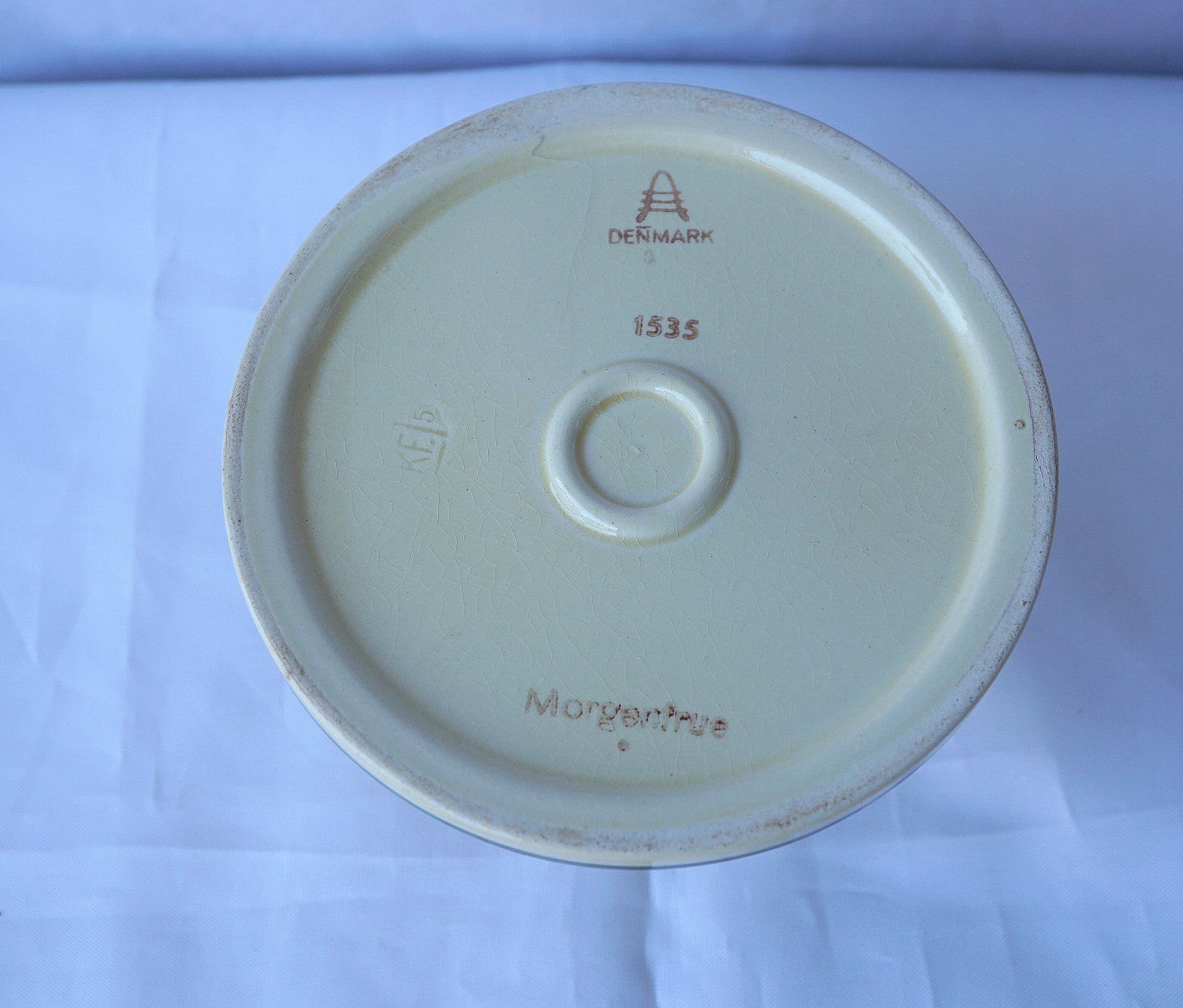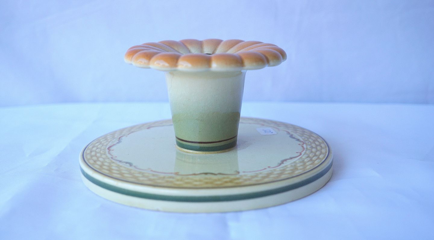 Aluminia, Morgenfrue rund lysestage i fajance med stor fod, findes med lille fod.