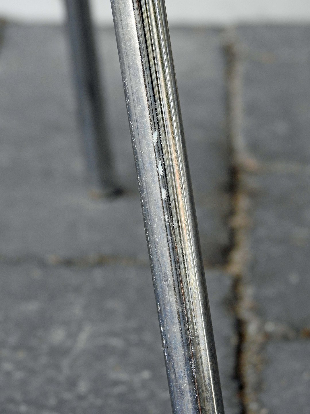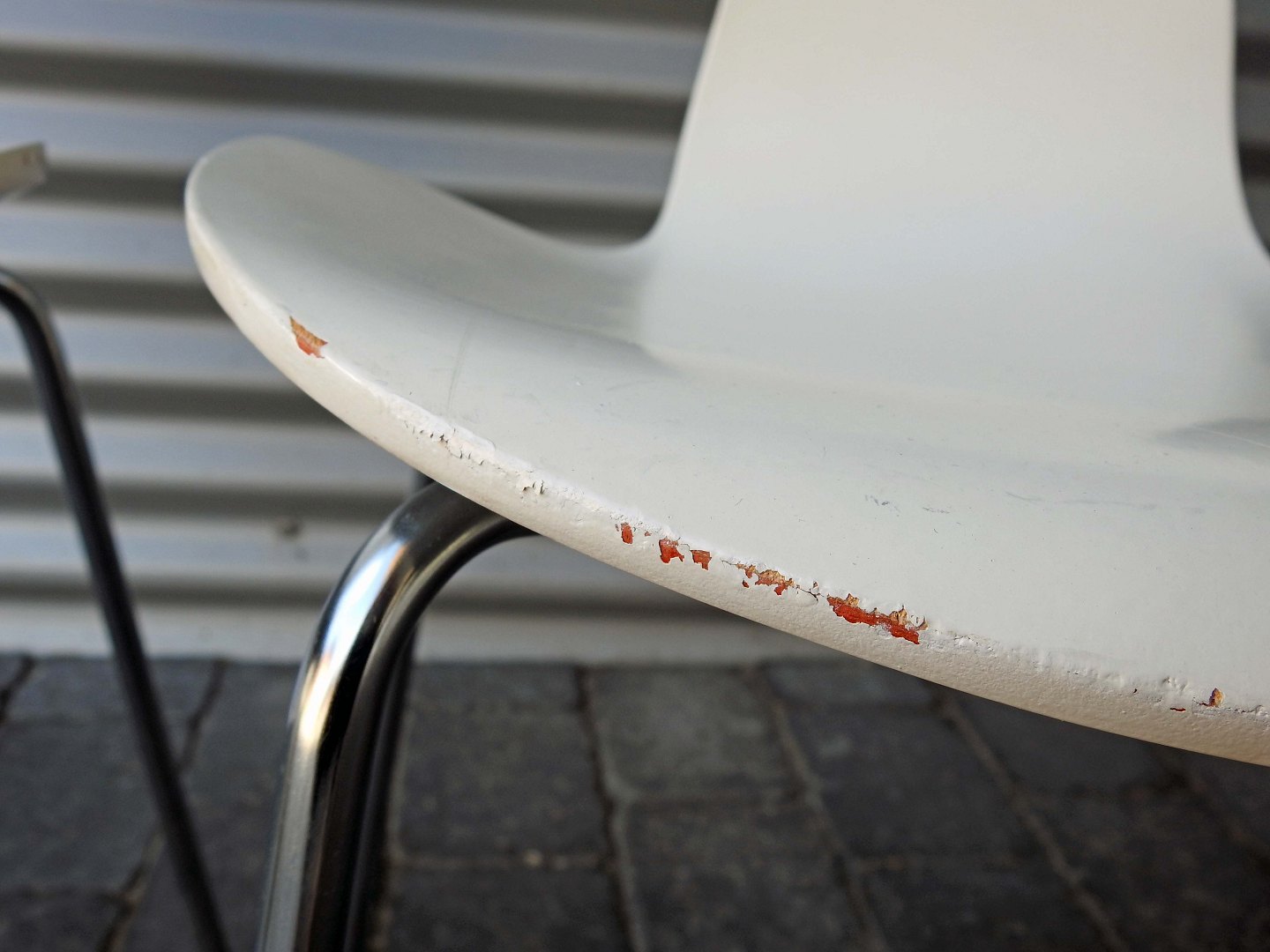 Spisebordsstole med hvidmalede skalsæder på forkromet stål stel