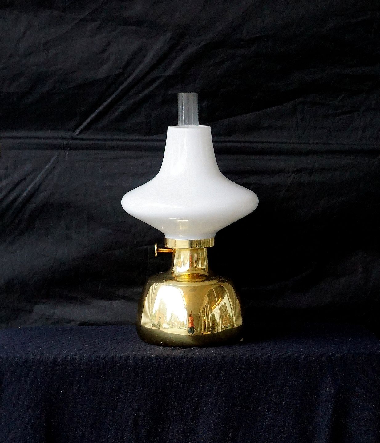 Olielampe med messingfod