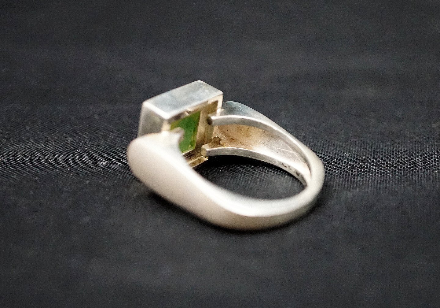 Sølvring med agatsten, dekoration på ringen er 4-kantet. Sølv 925s Sterling
