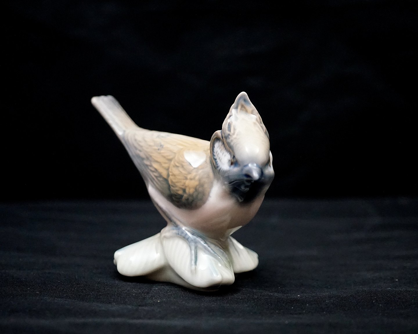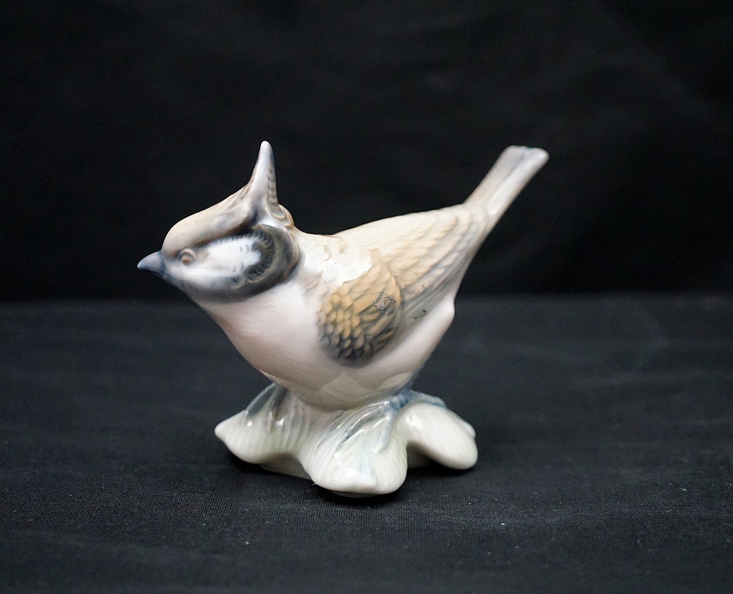 Lyngby figur nr. 77, af topmejse. Fuglen er produceret ved Porcelænsfabrikken Danmark.