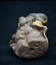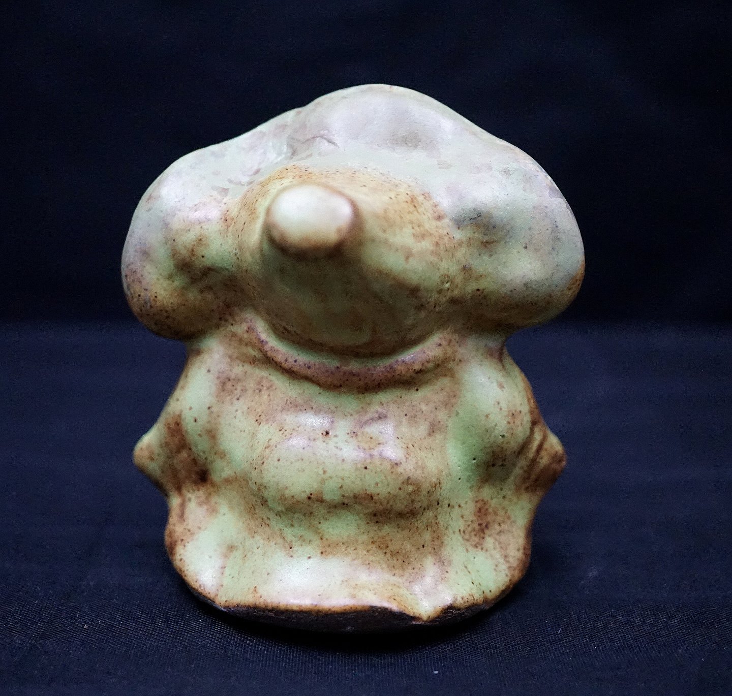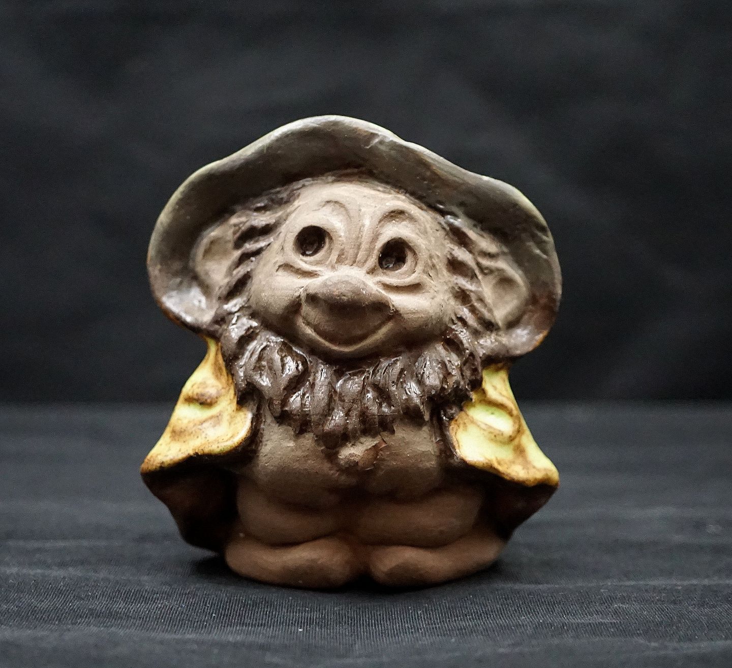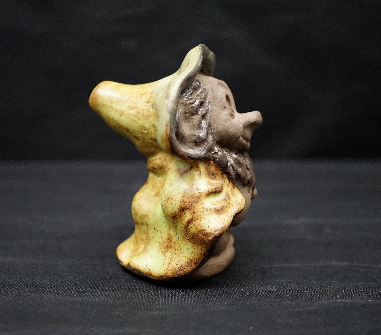Dam trold (67) i keramik. Gjøl trold. Trolden har gul frakke på