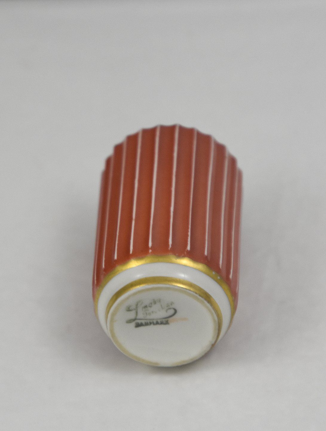 Rød Lyngby vase i porcelæn med riflet korpus og guldkant
