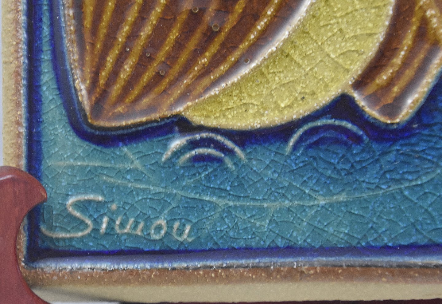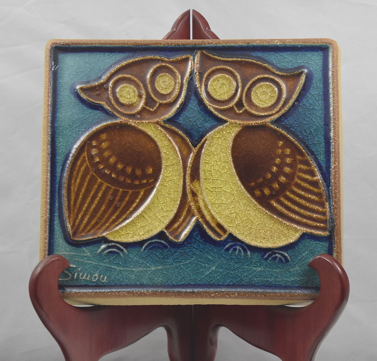 Søholm relief, 2 ugler i brune farver, med turkis baggrund nr. 3544