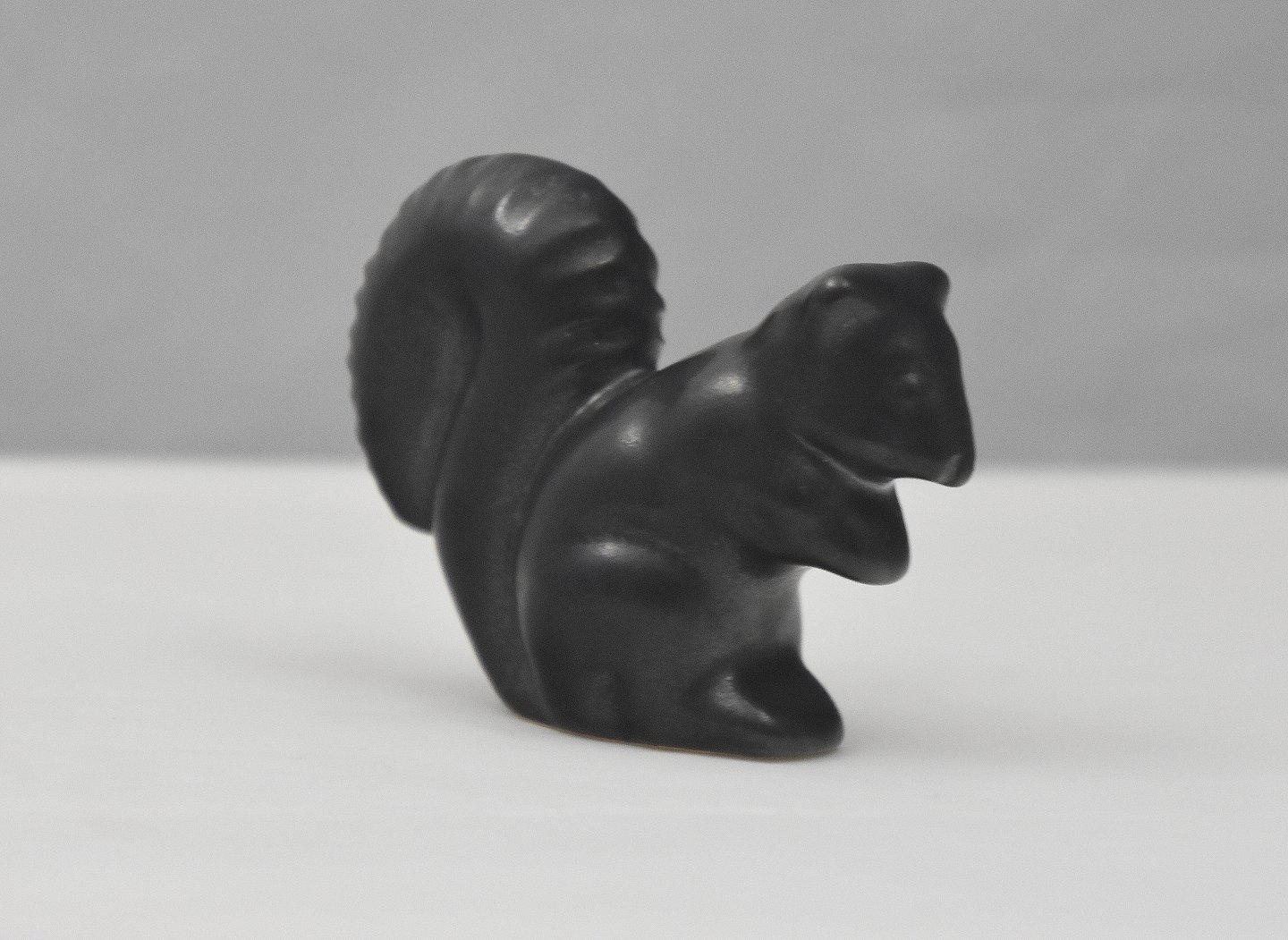 Figur af siddende egern, brun glaseret. Egernet er lavet i keramik