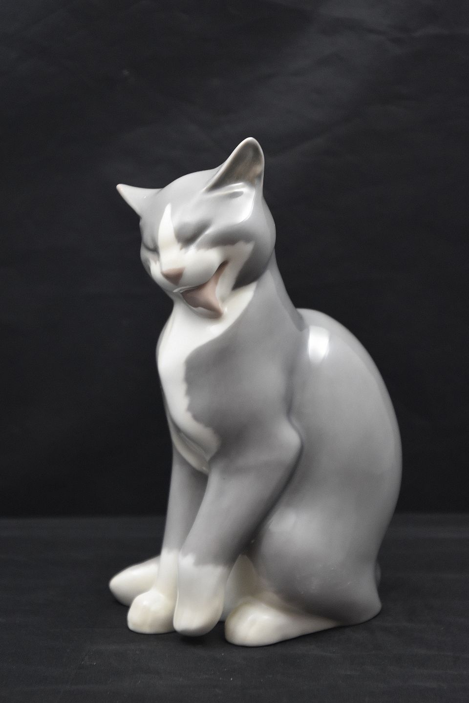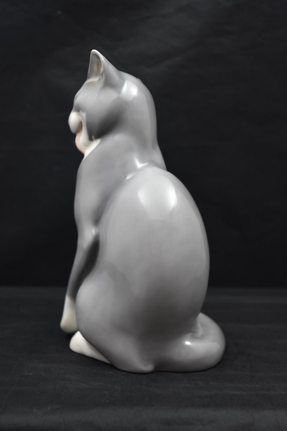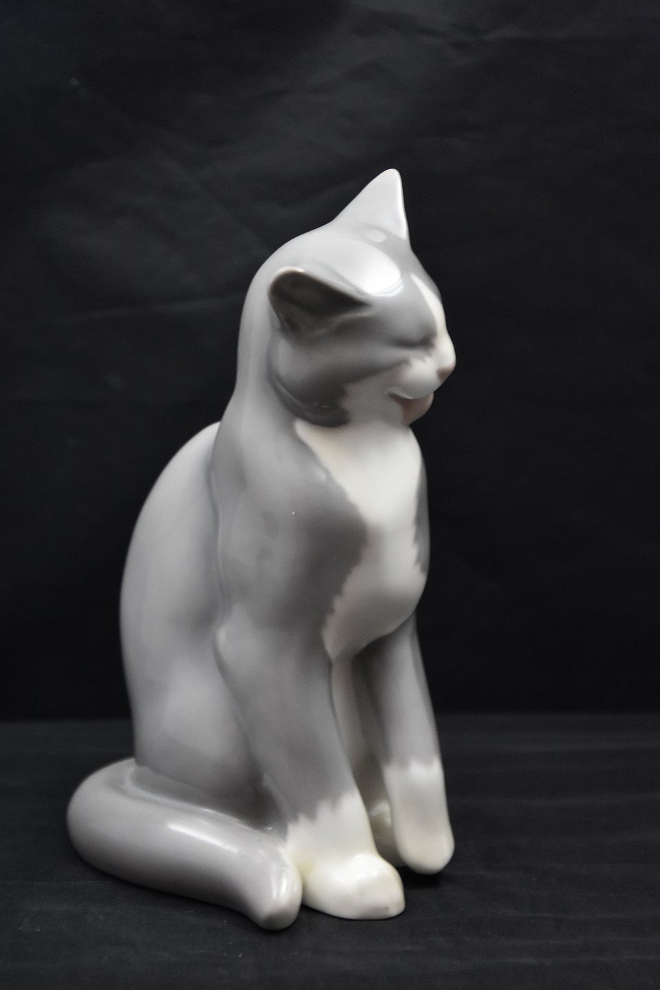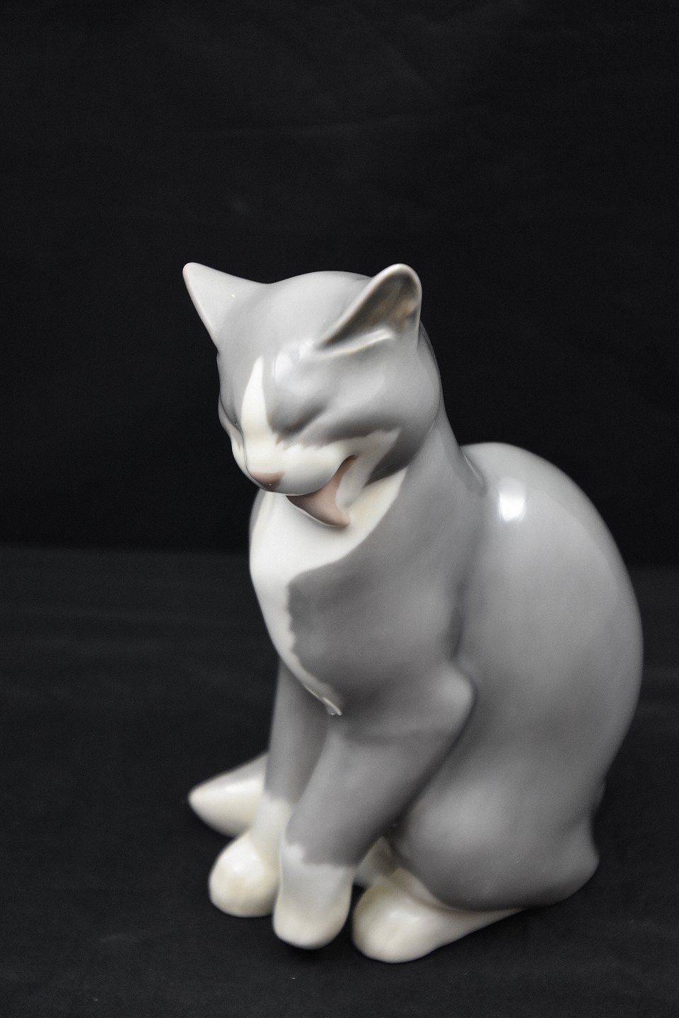B&G figur af siddende kat nr 2256, katten er grå. Figuren er 1. sortering