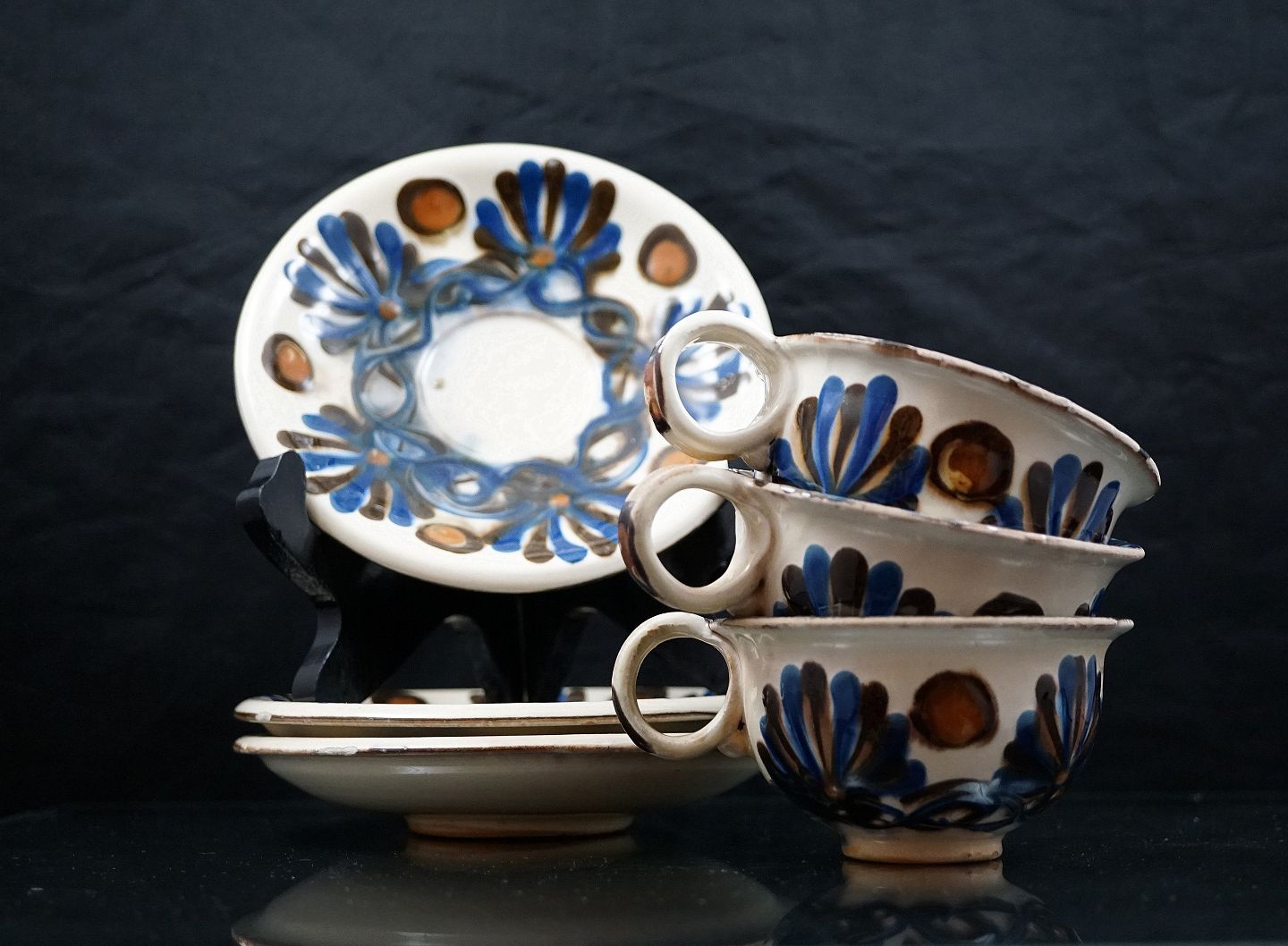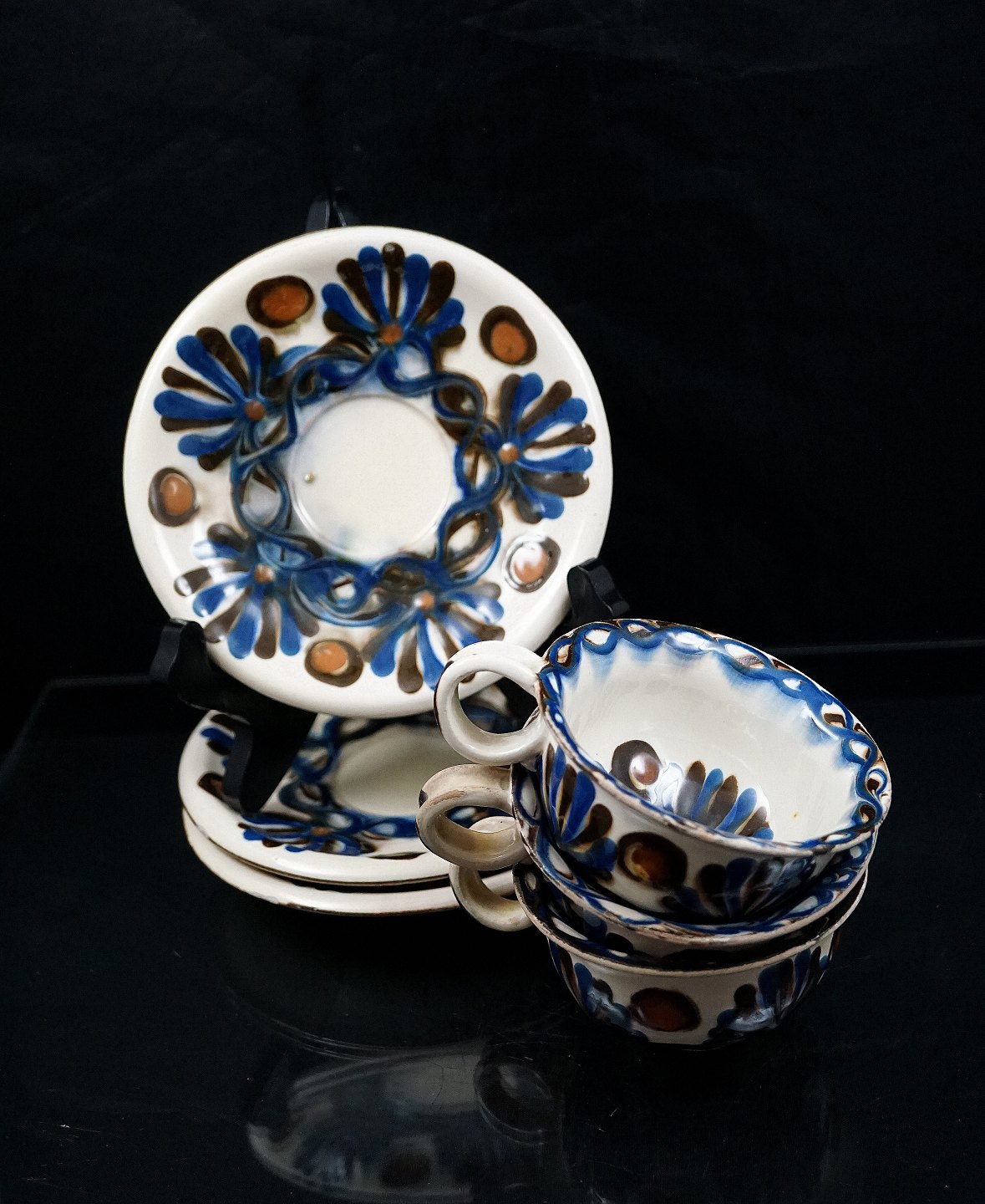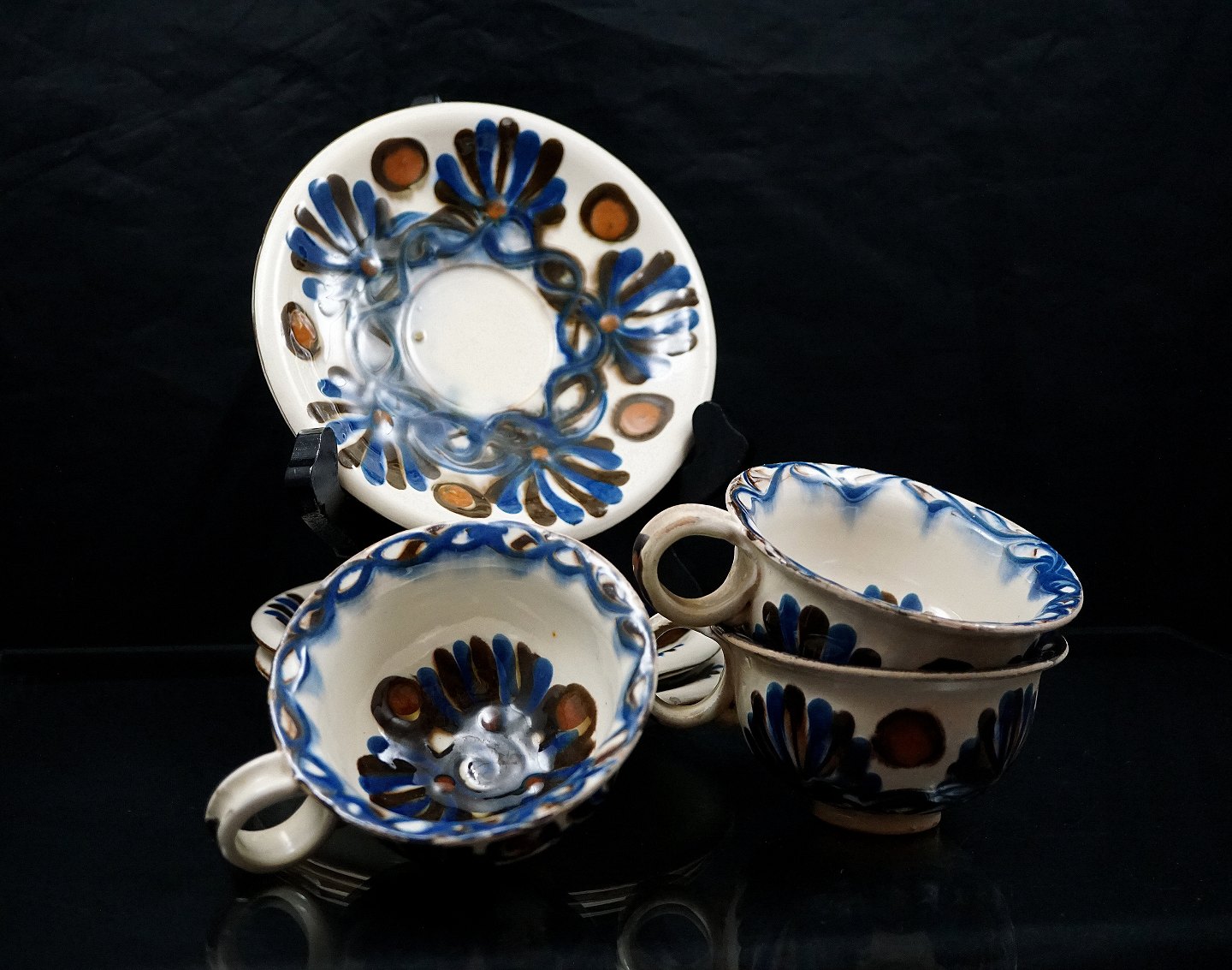 3 kopper med underkopper, dekoreret med Kohornsteknik/Kohornsglasur