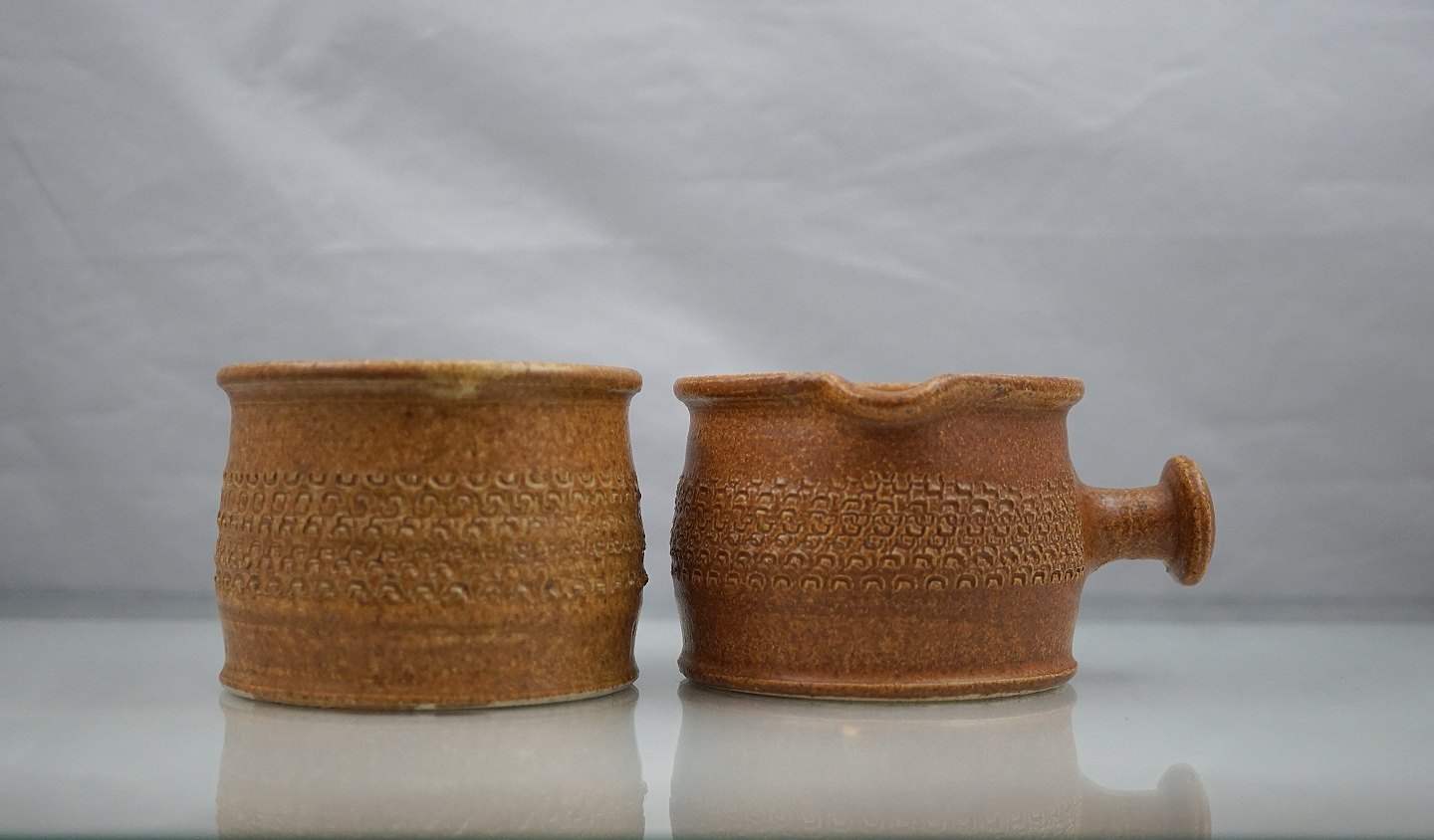 Sukkerskål og flødekande, udført i keramik, uden bakke.