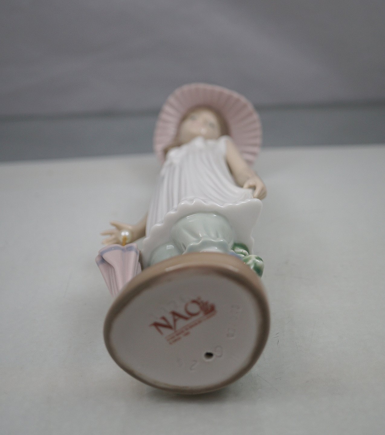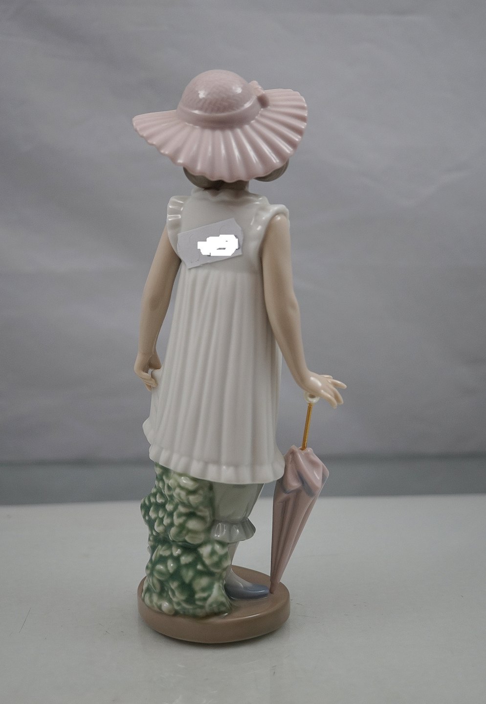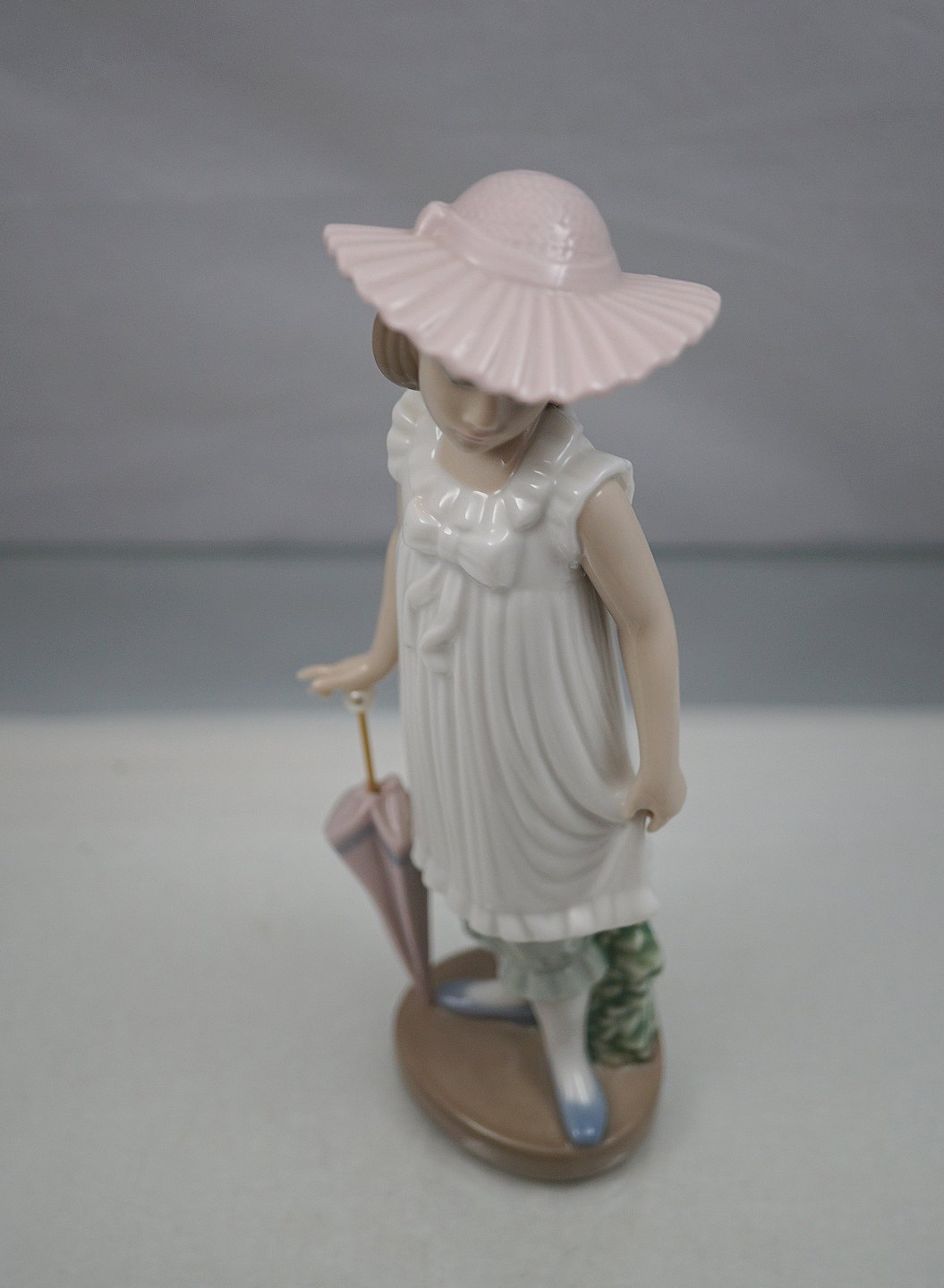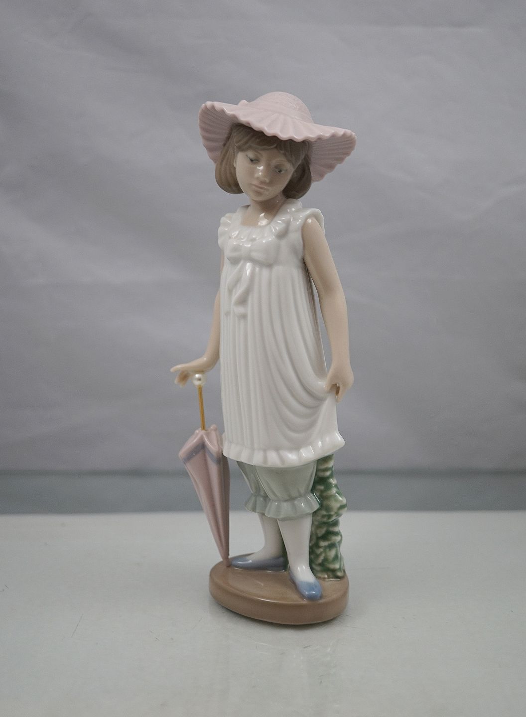 Lladro NAQ Daisa 1990, Pige med paraply og lyserød hat. Spansk figur, håndlavet i Spanien