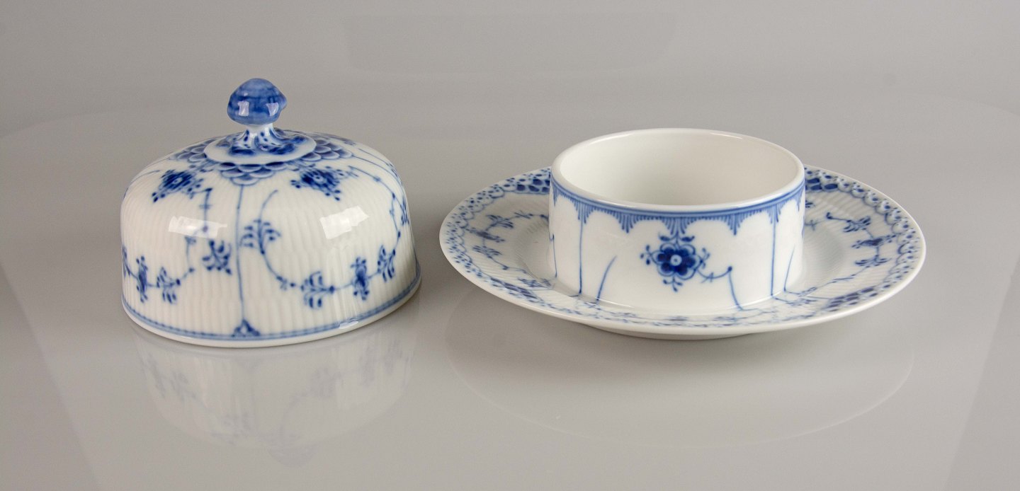 Musselmalet halvblonde smørskål med låg nr. 1/502
