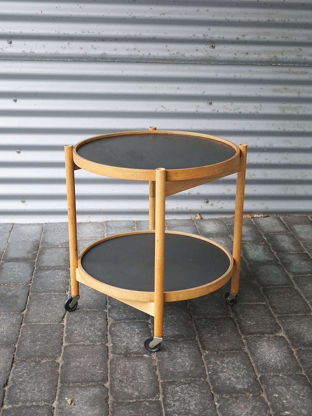 Bakkebord med stel i massivt egetræ og aftagelige bakker