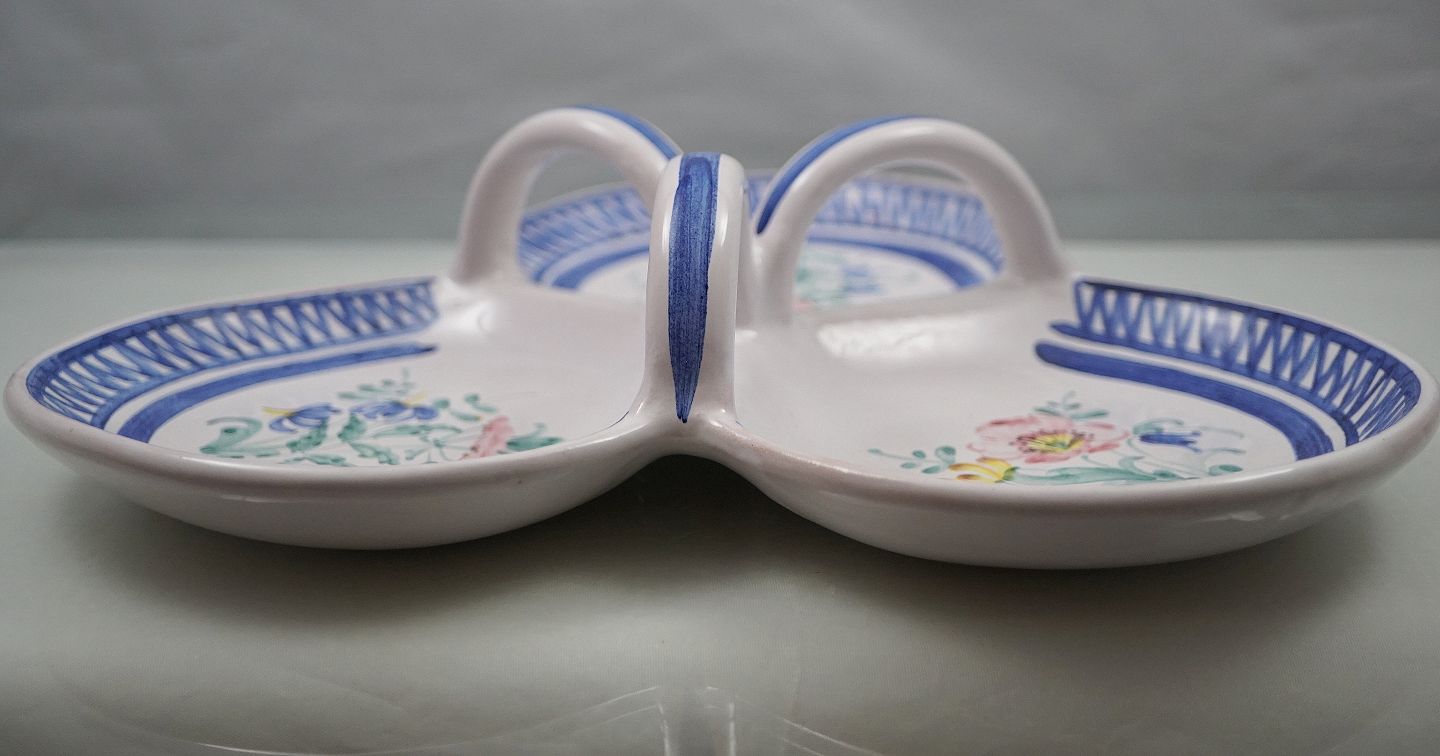 Lars Syberg, Cabaret, keramik, fad. Fadet har 3 hanke og er 3-delt, fadet er dekoreret med blå dekoration