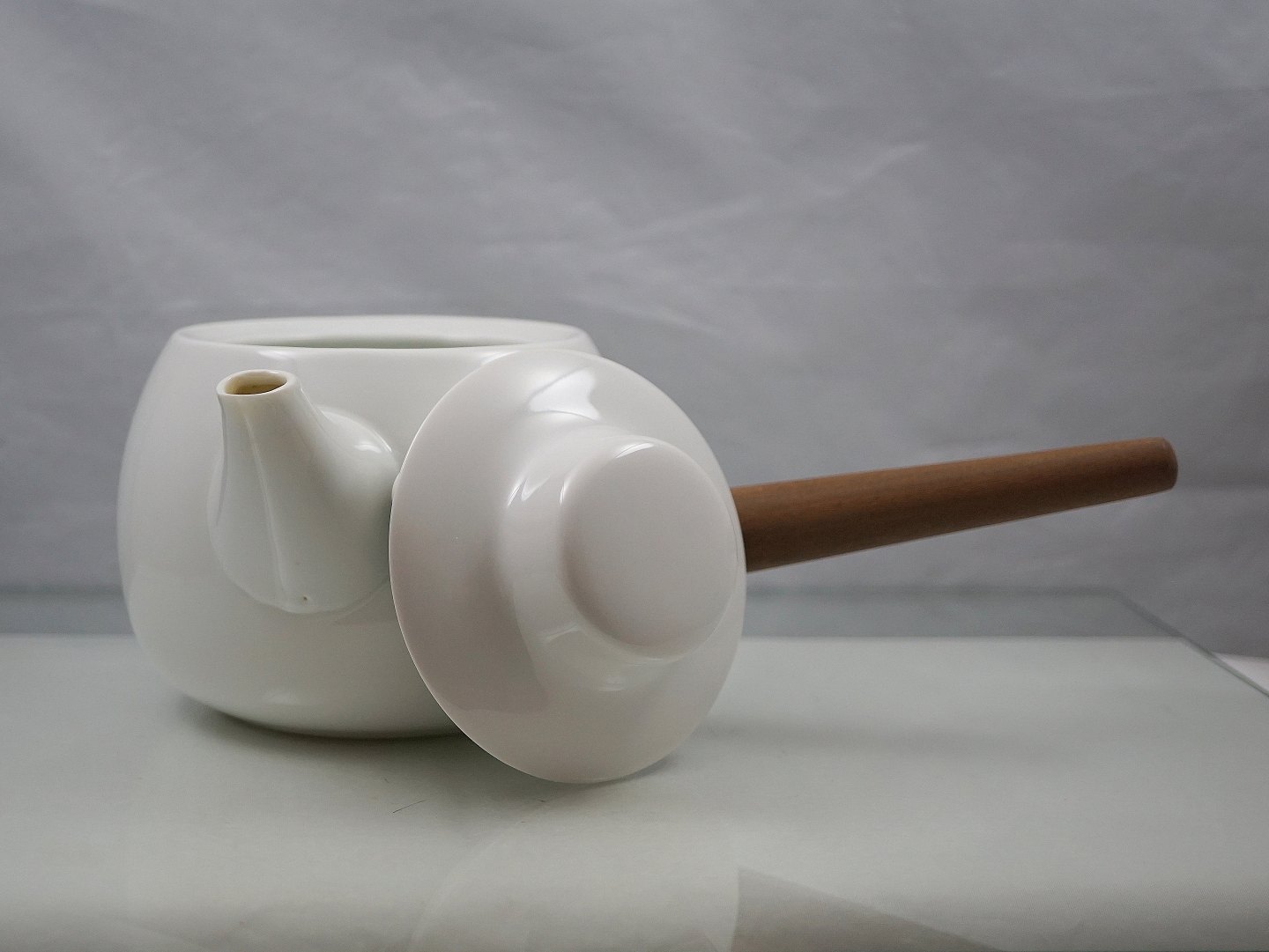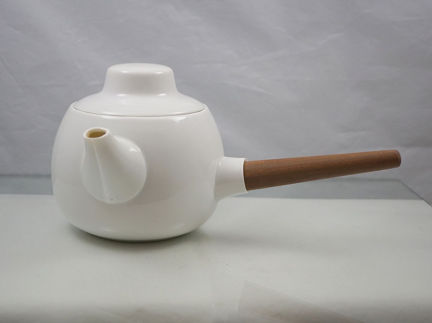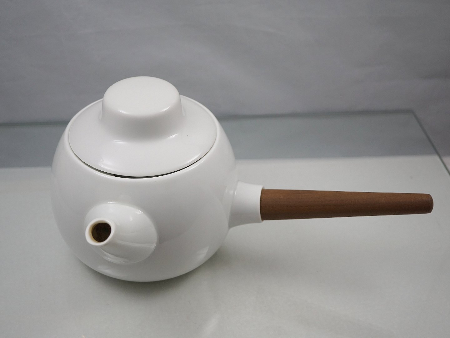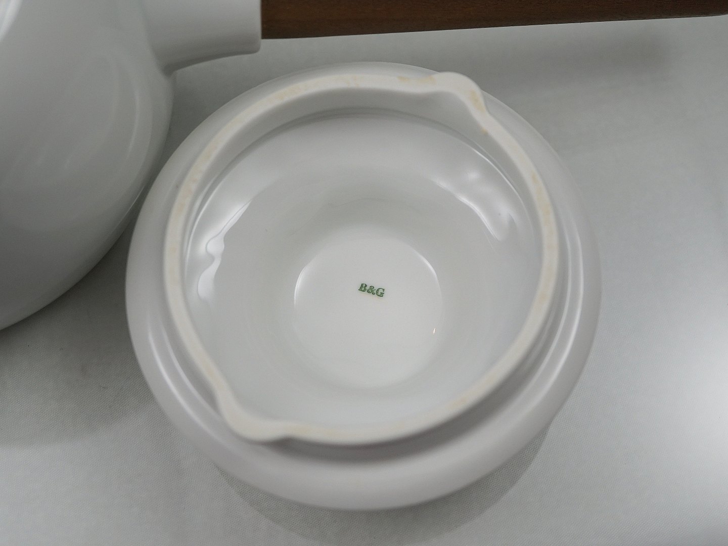 Bing & Grøndahl. Hvid Koppel Thekande nr. 654. Hvid Thekande med stjerthank af teaktræ