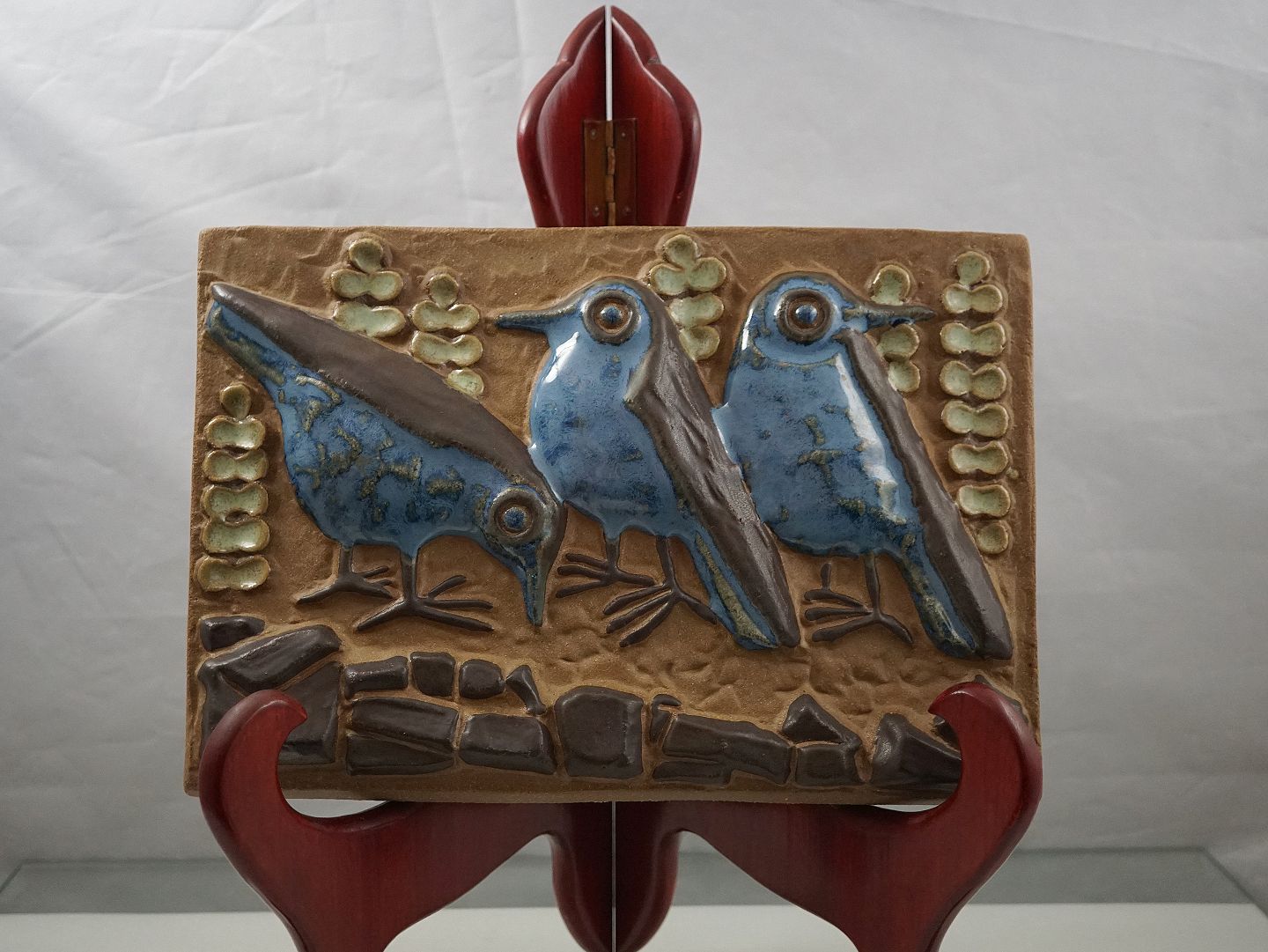 Relief i stentøj med motiv af 3 blå fugle nr. 6267