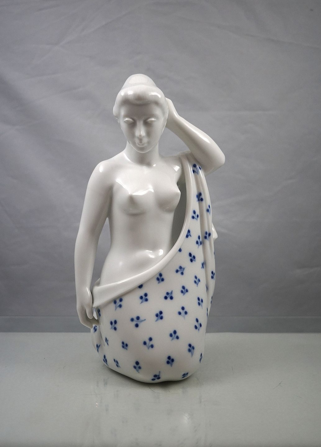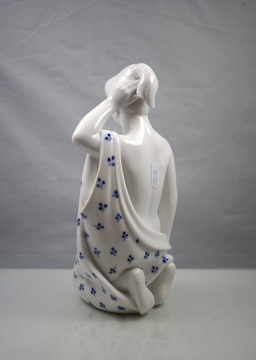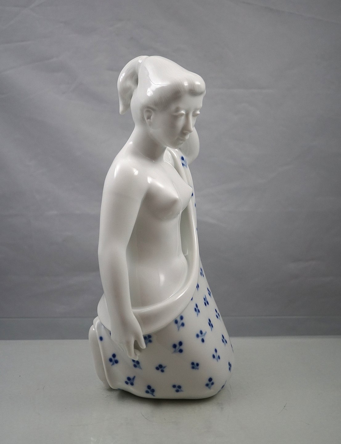 Figur i porcelæn med motiv af nøgen knælende kvinde med blåmalet klæde Nr. 4354.