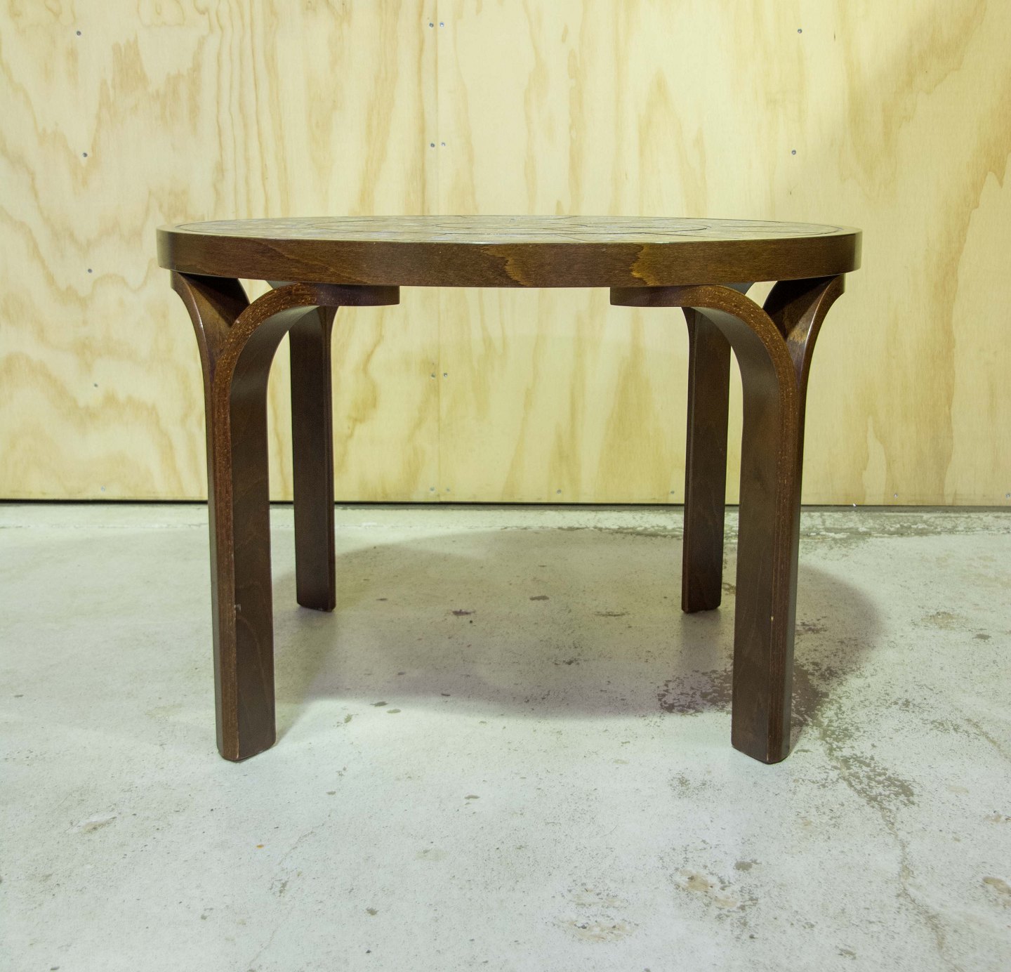 Sofabord i lakeret bejdset bøgetræ med mønstrede kakler