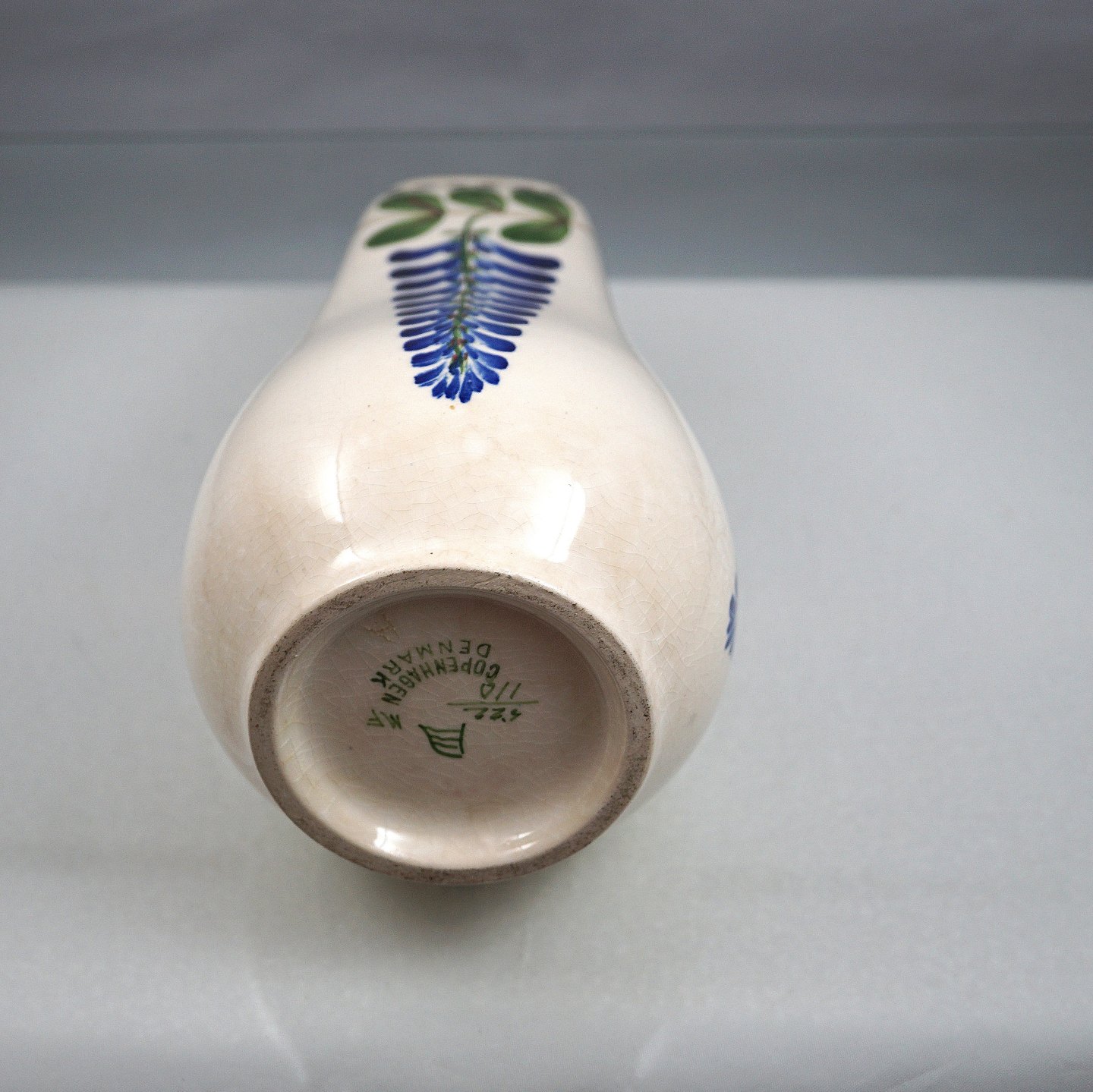 Royal Copenhagen, RC., Den Kongelige Porcelænsfabrik, KGL., kongelig, Aluminiua, kunstfajance, blå, grøn, blade