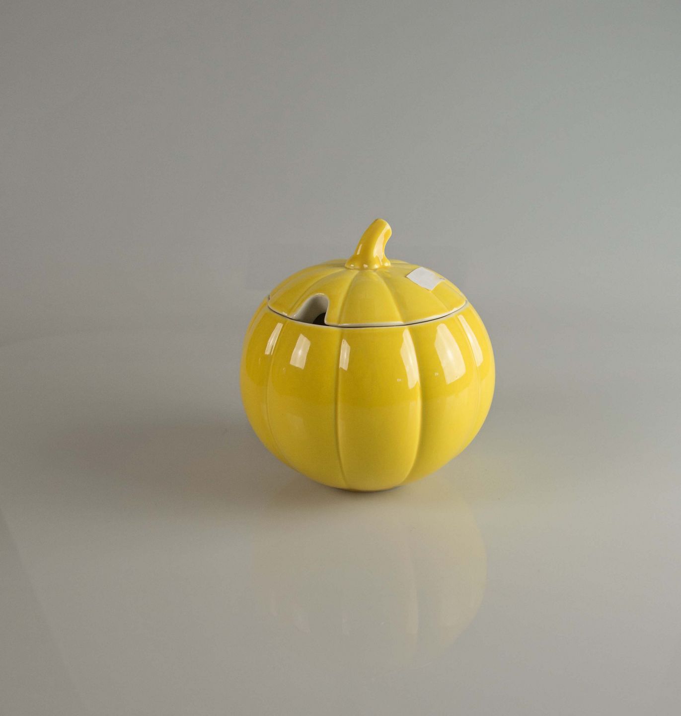 Gul græskar marmeladekrukke i fajance fra Confetti stellet Susanne