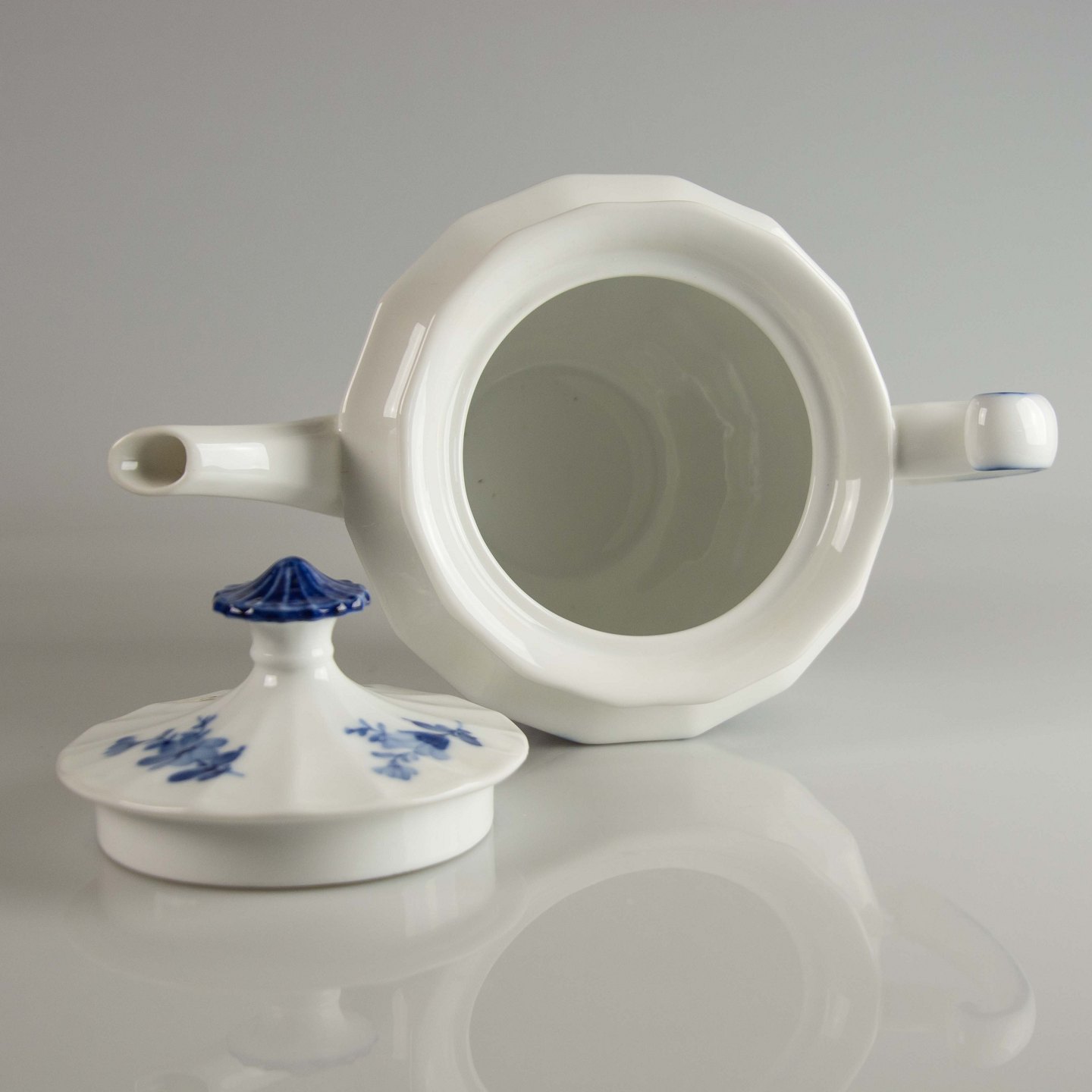 Kgl. tekande, Royal Copenhagen Blå blomst kantet kande, Royal Copenhagen tekande nr. 10/8503, Kongelig tepotte, RC blå blomst kande