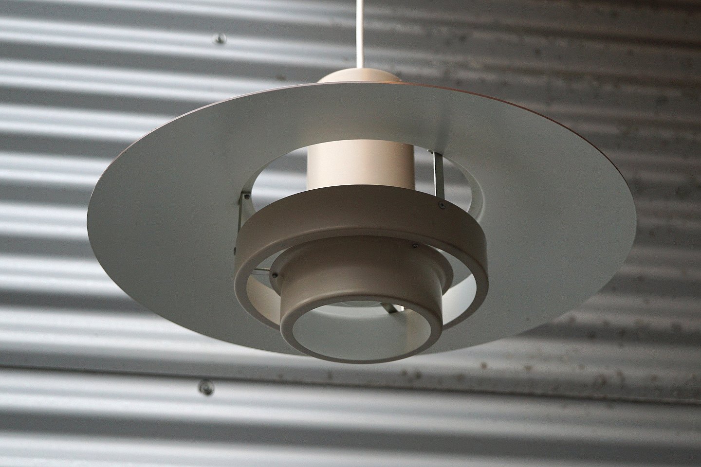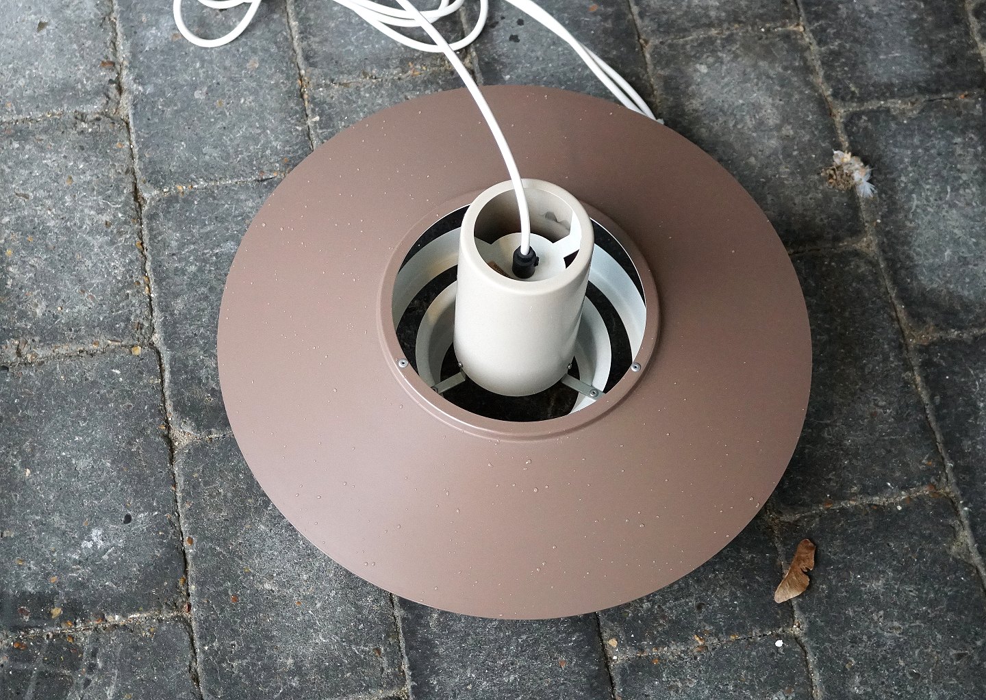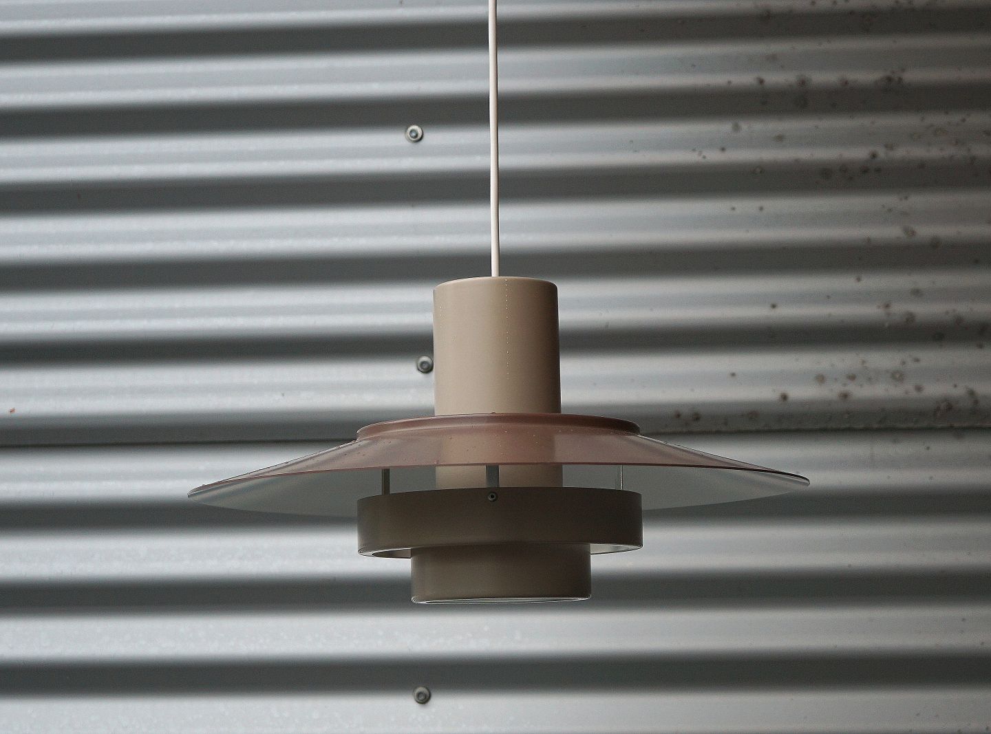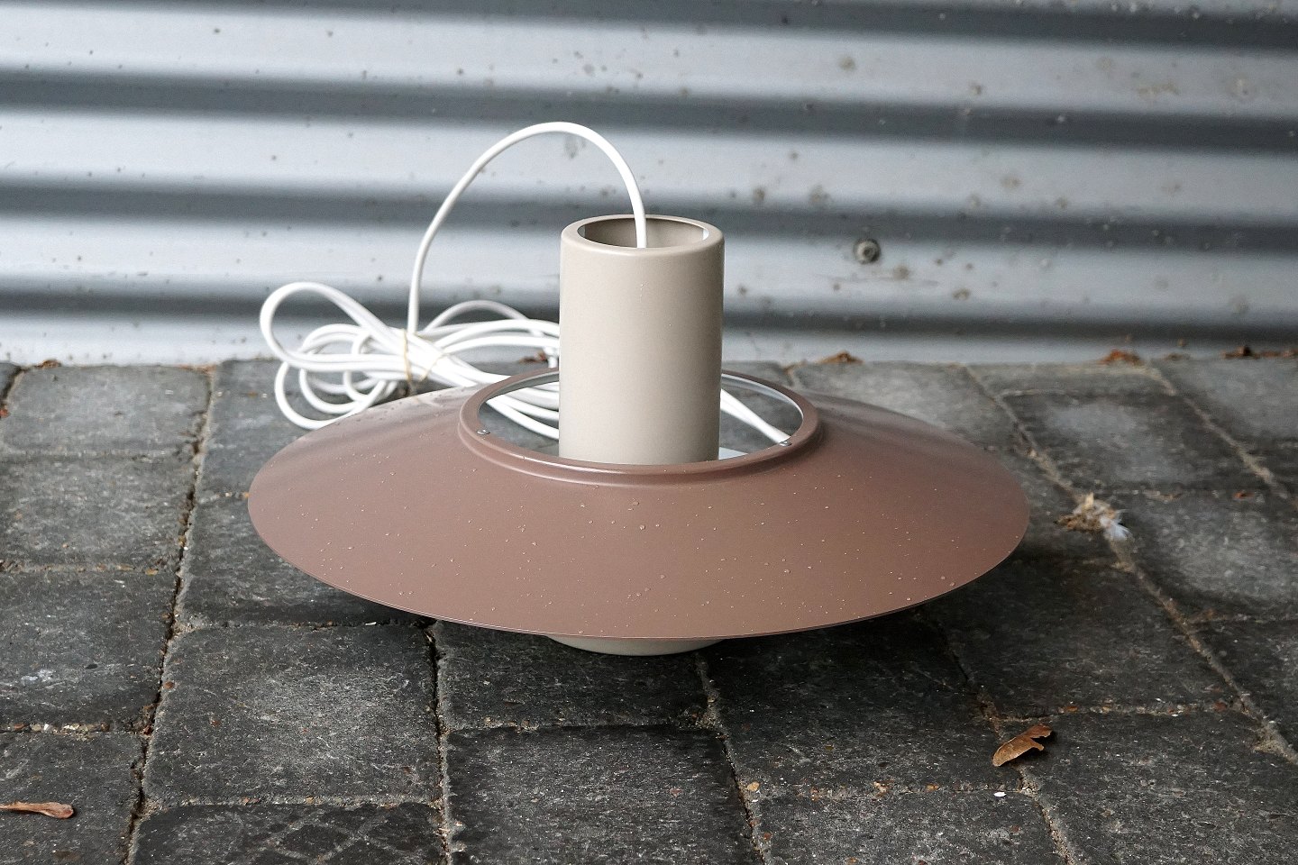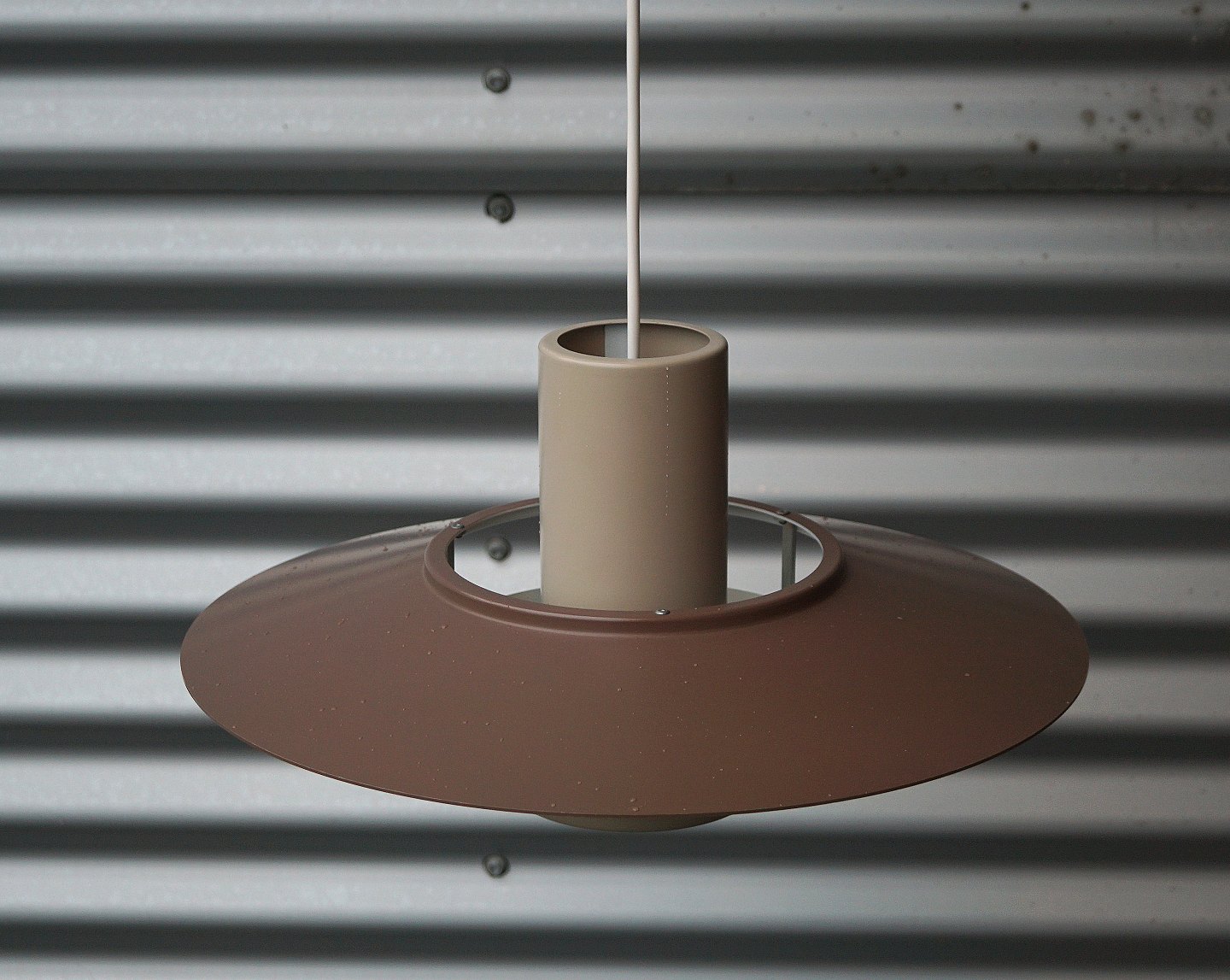 Fog & Mørup Falcon pendel. Lysebrun, mat lakeret, metal pendel. Pendlen er hvidlakeret indvendig