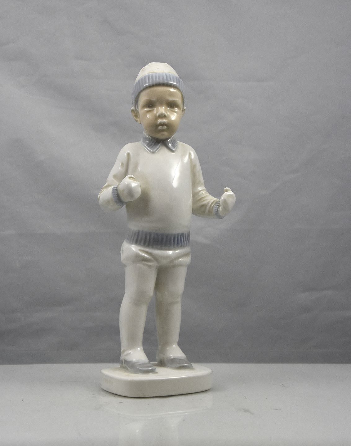 Figur i porcelæn med motiv af stående dreng iklædt vintertøj nr. 1843