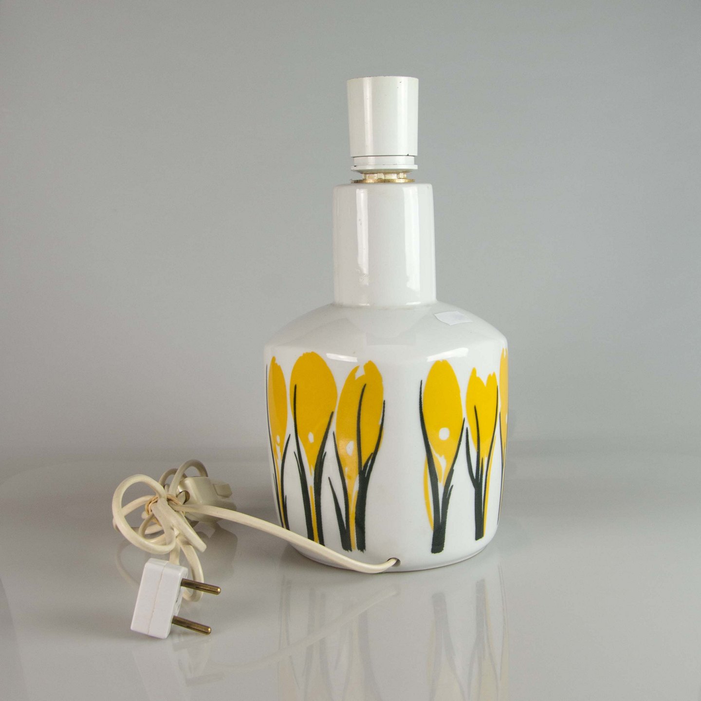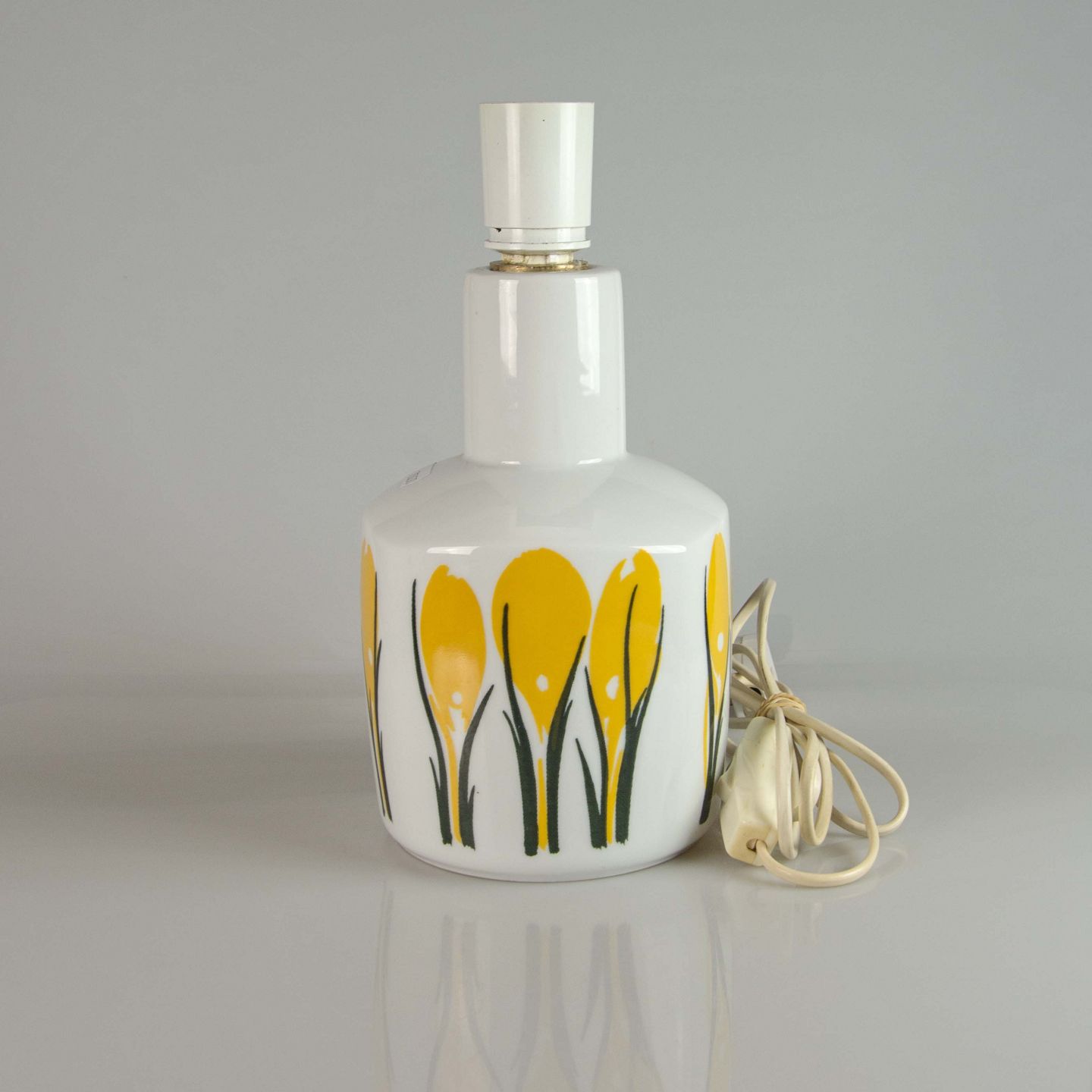 Lampefod i porcelæn med motiv af gule krokus blomster nr. 714/2102