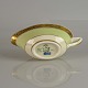 Smørkande i lys grøn og hvid porcelæn med gylden bort med motiv af krone og plantemotiver.