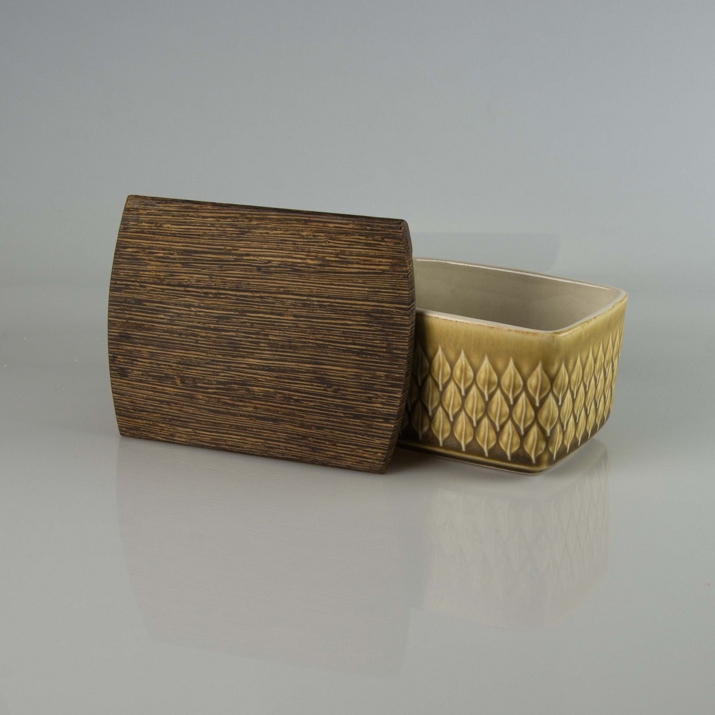 Relief smørskål med trælåg