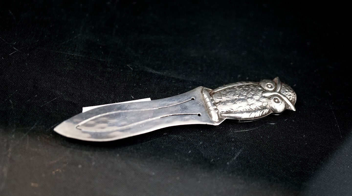 Bogmærke med ugle. Stemplet HJ - Hans Jensen (sølvsmed)- 830S