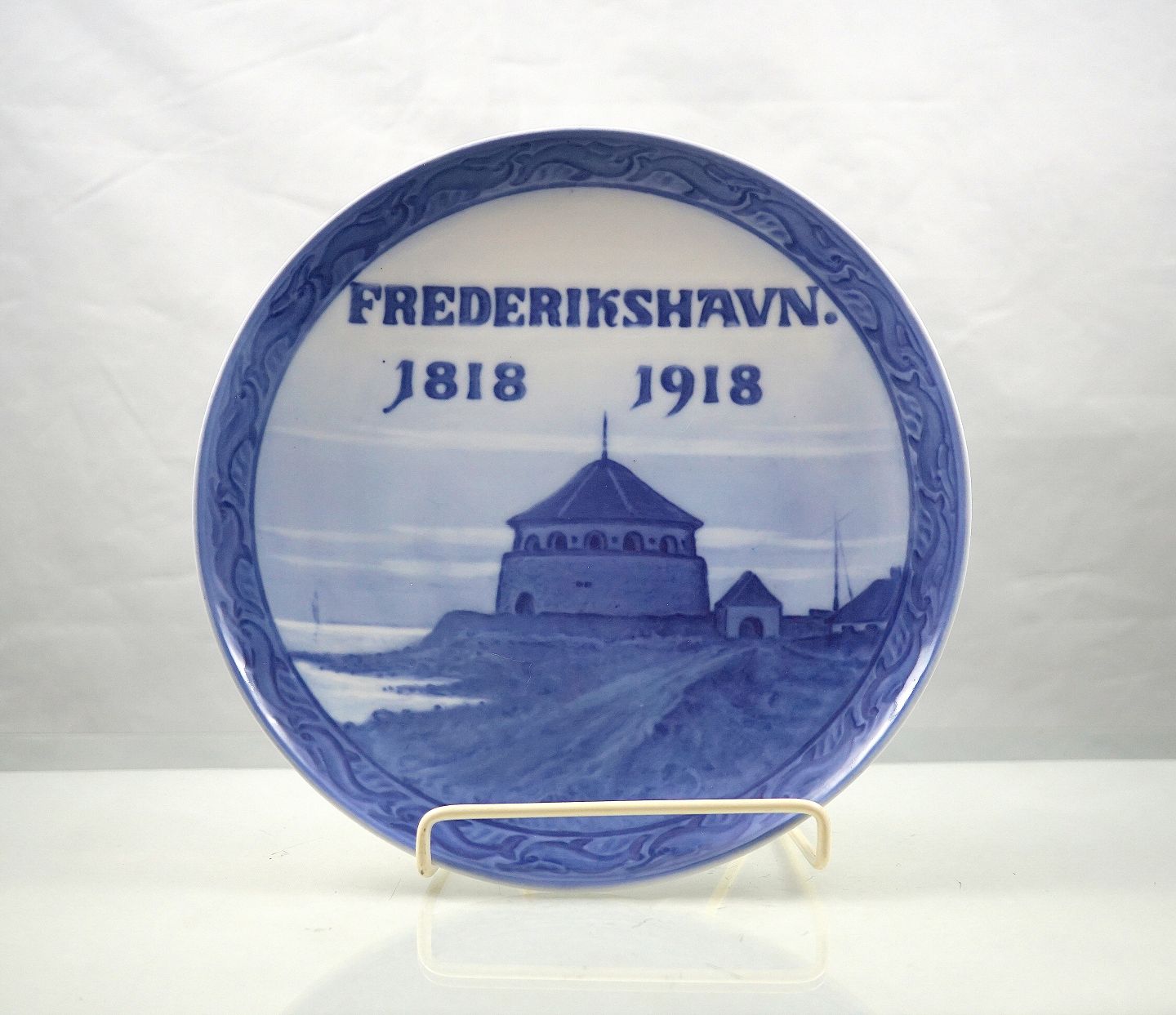 Royal Copenhagen. Minde platte med Krudttårnet i Frederikshavn 1818-1918. Platten er fremstillet i anledning af byens 100-årsjubilæum som købstad