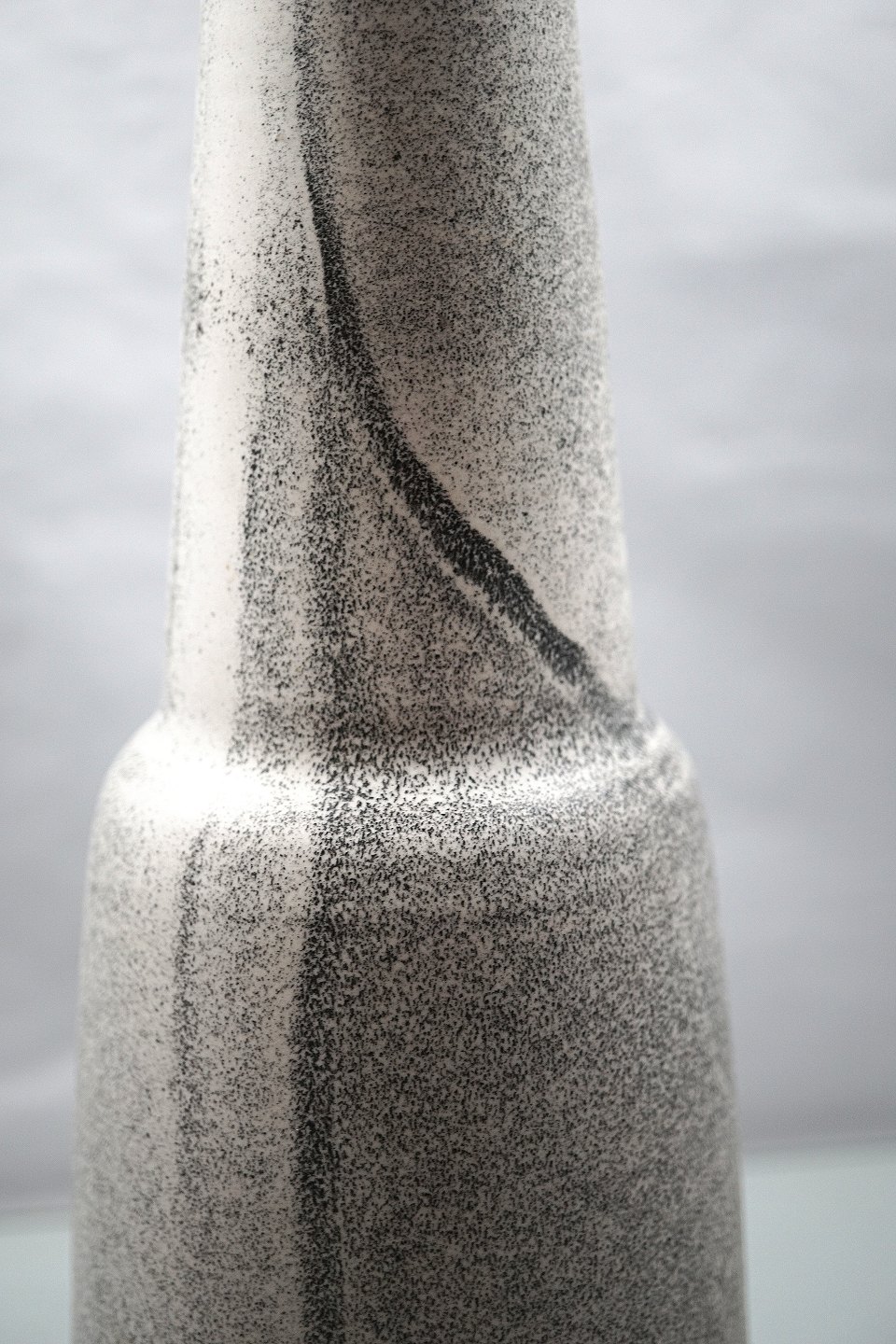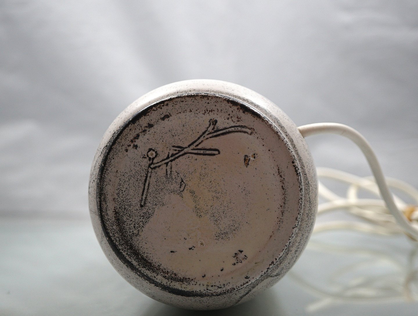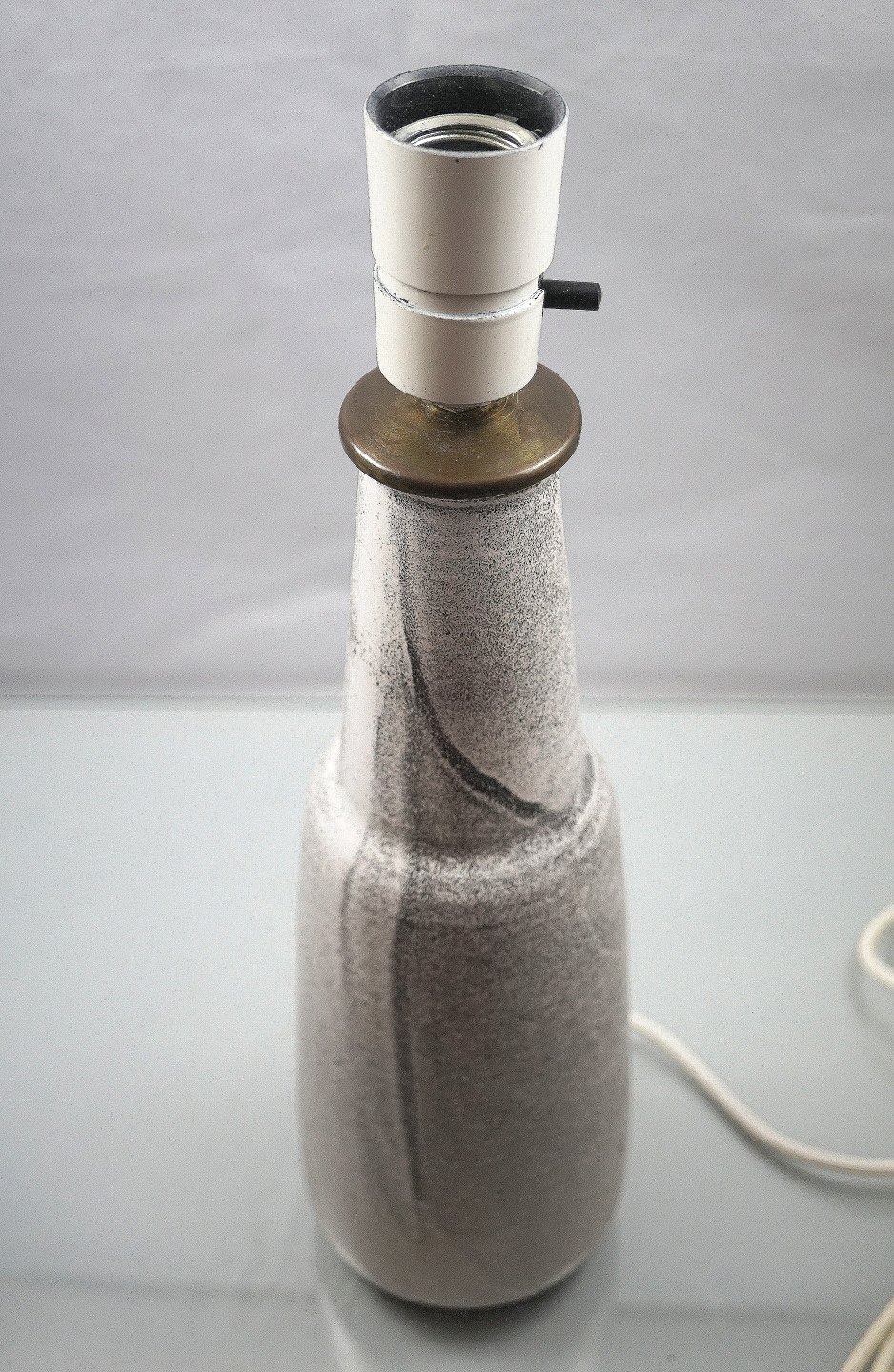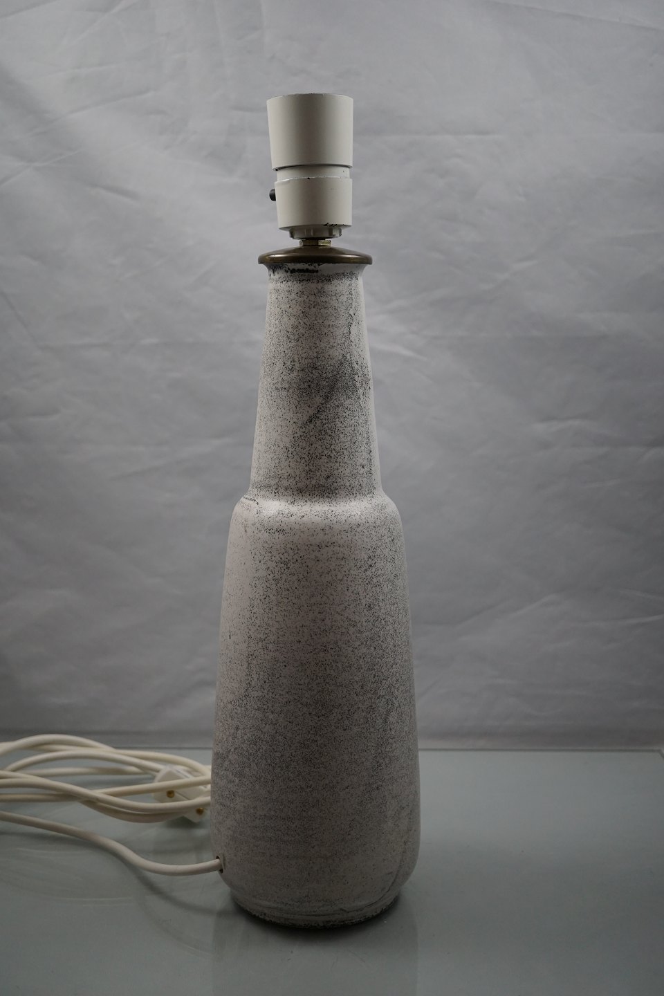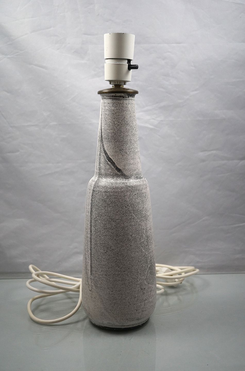 Kähler. Bordlampe i keramik, lampen er grå med sort dekoration. Det er muligvis en Hammershøj lampe. Askeglassur
