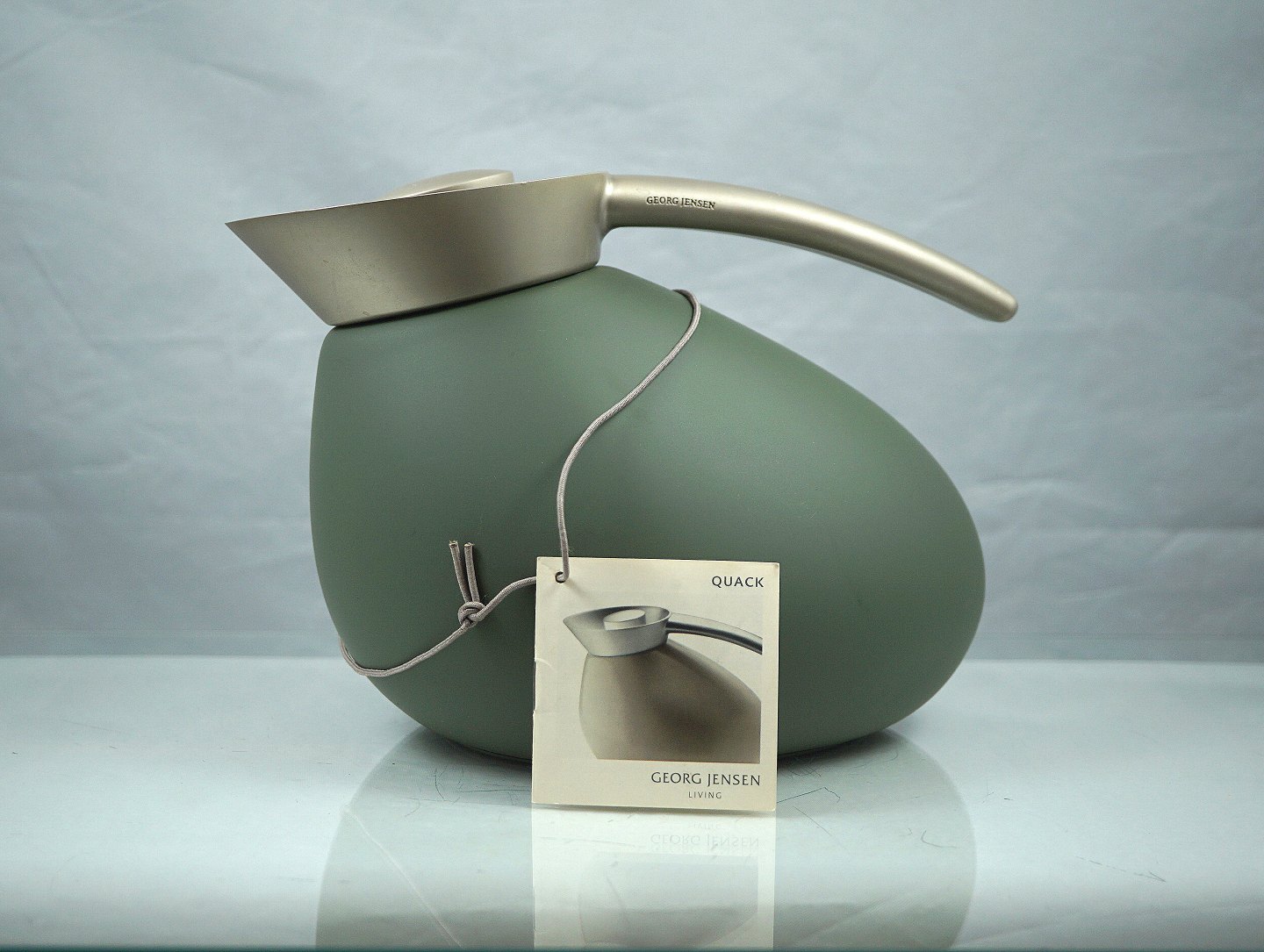 Georg Jensen. "Quark", mint grøn termokande. Quark kanden er opkaldt efter den lille ælling. Kanden er vinder af designprisen "Red Dot Award" 2003