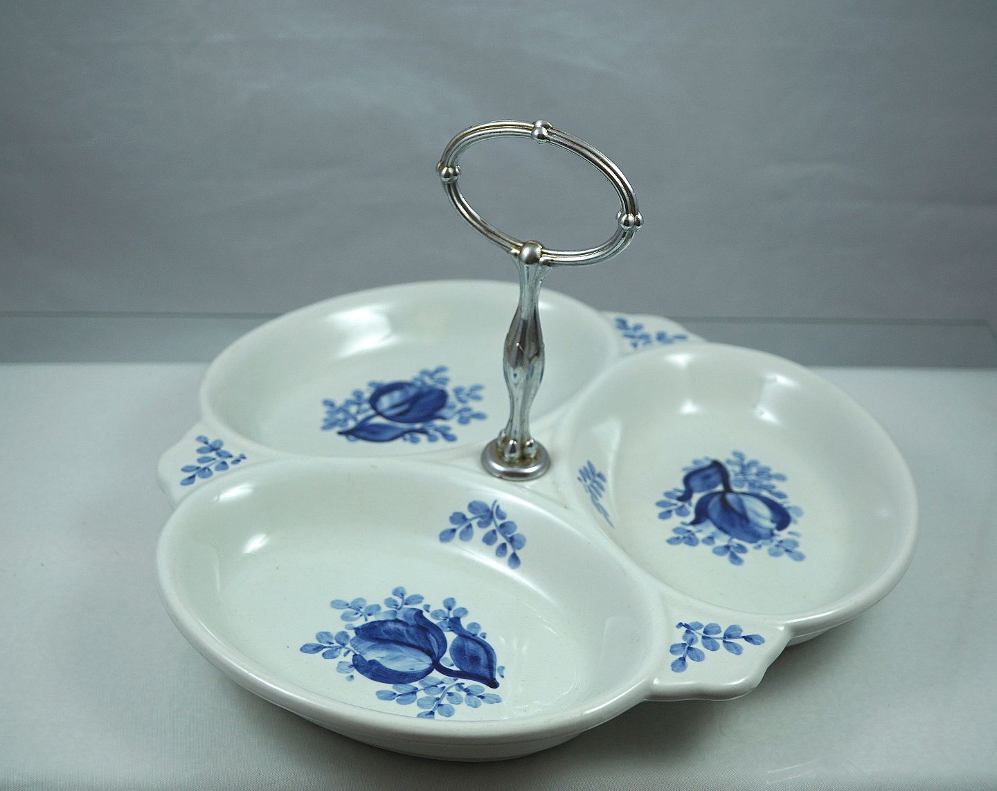 KGL. Aluminia. Tranquebar nr. 11/1432, Cabaretfad, fadet har sølvfarvet håndtag.