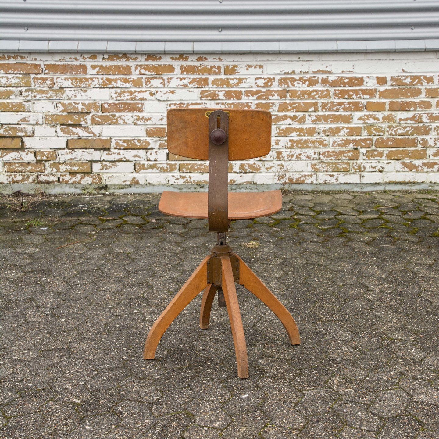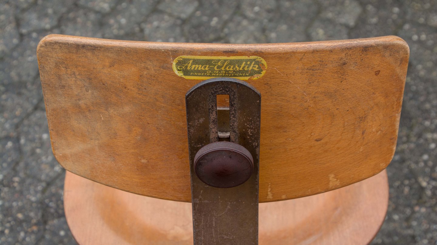 Industrielstol med justerbar ryglæn og højde. Stolen er medbragt af den Tyske hær under 2. Verdenskrig.