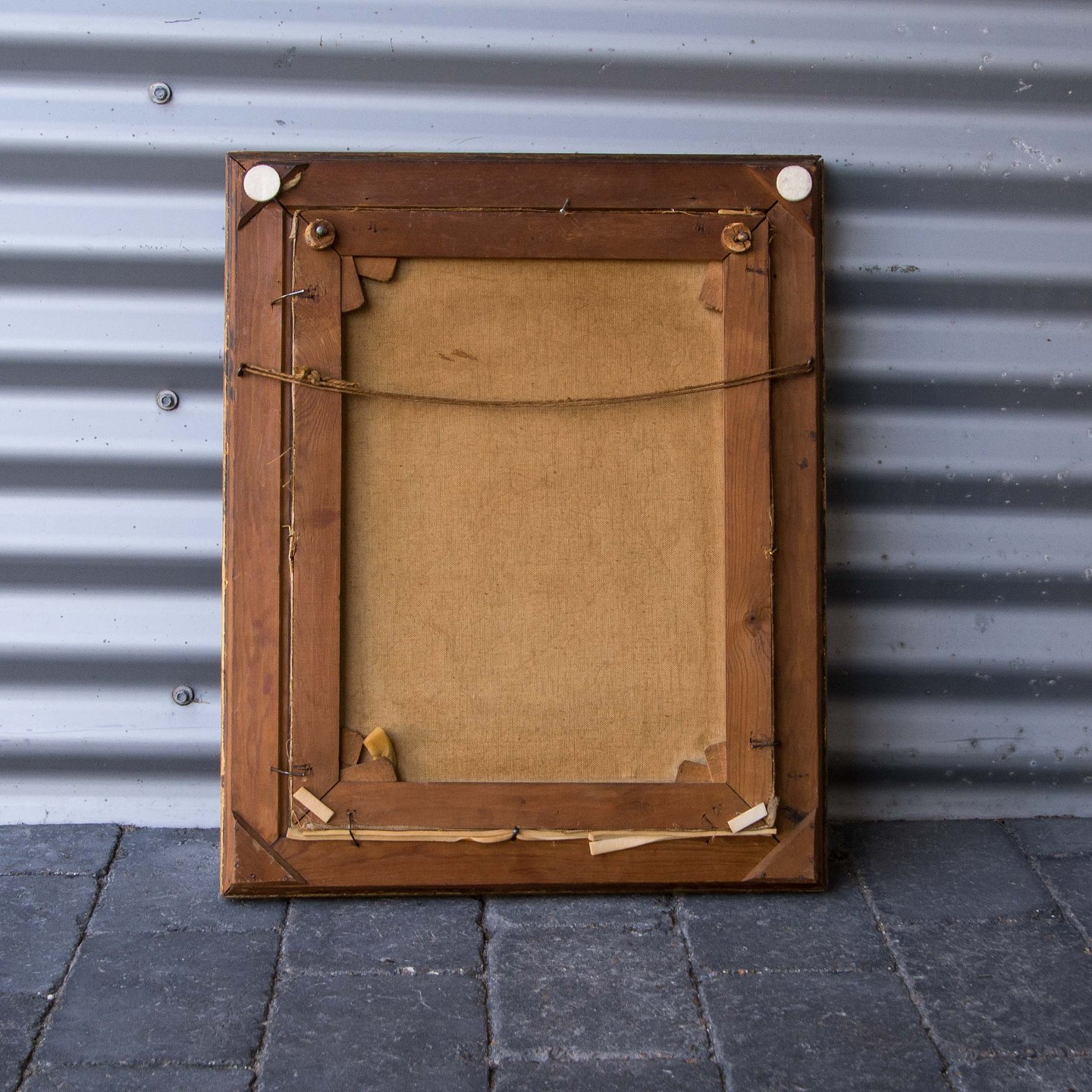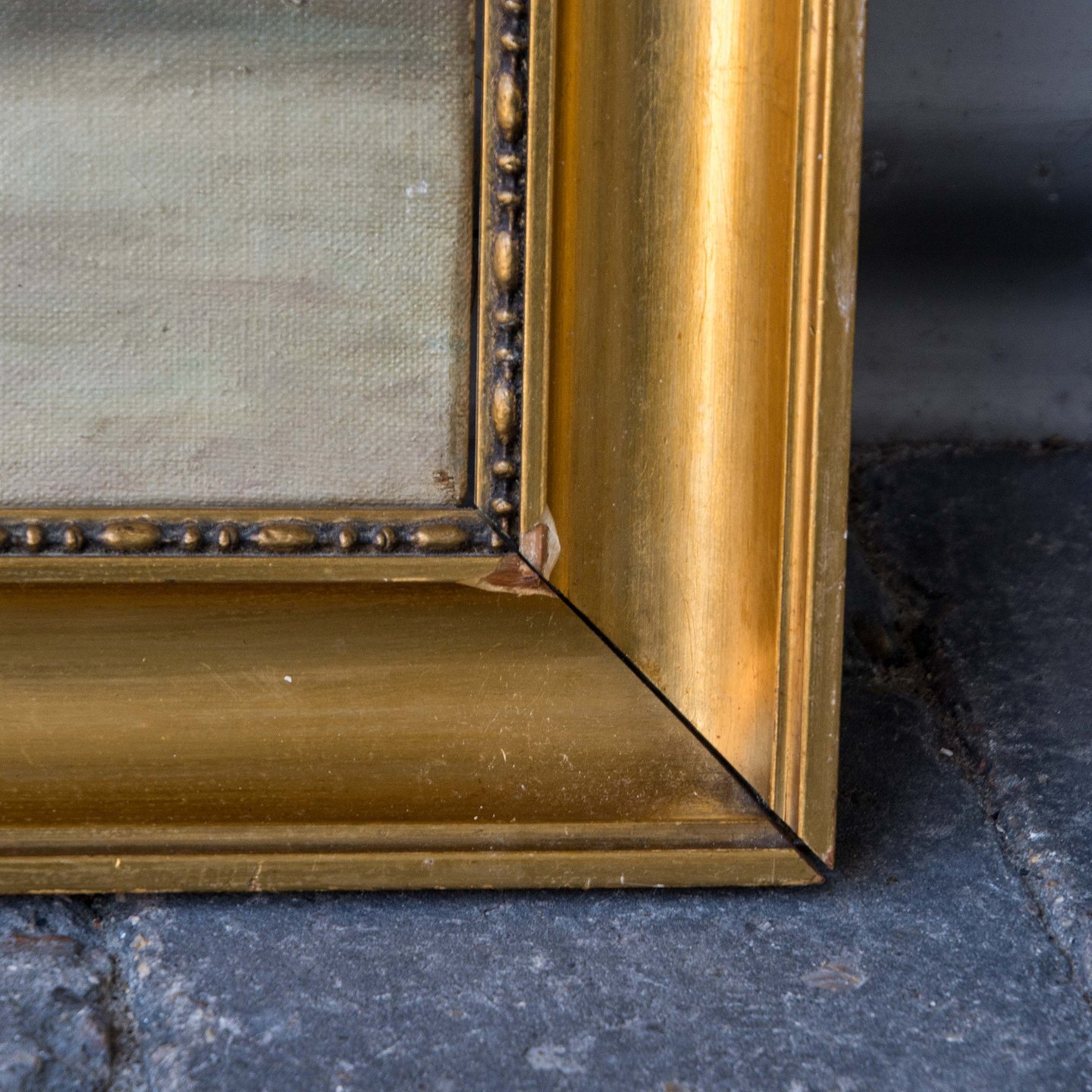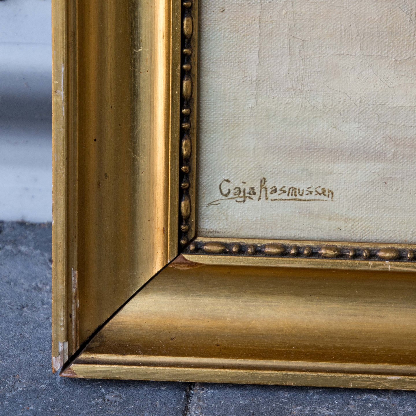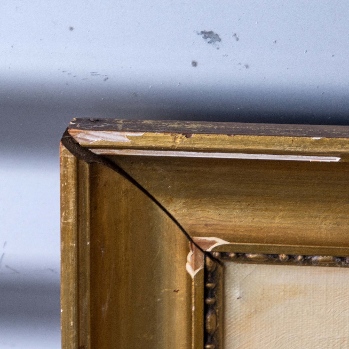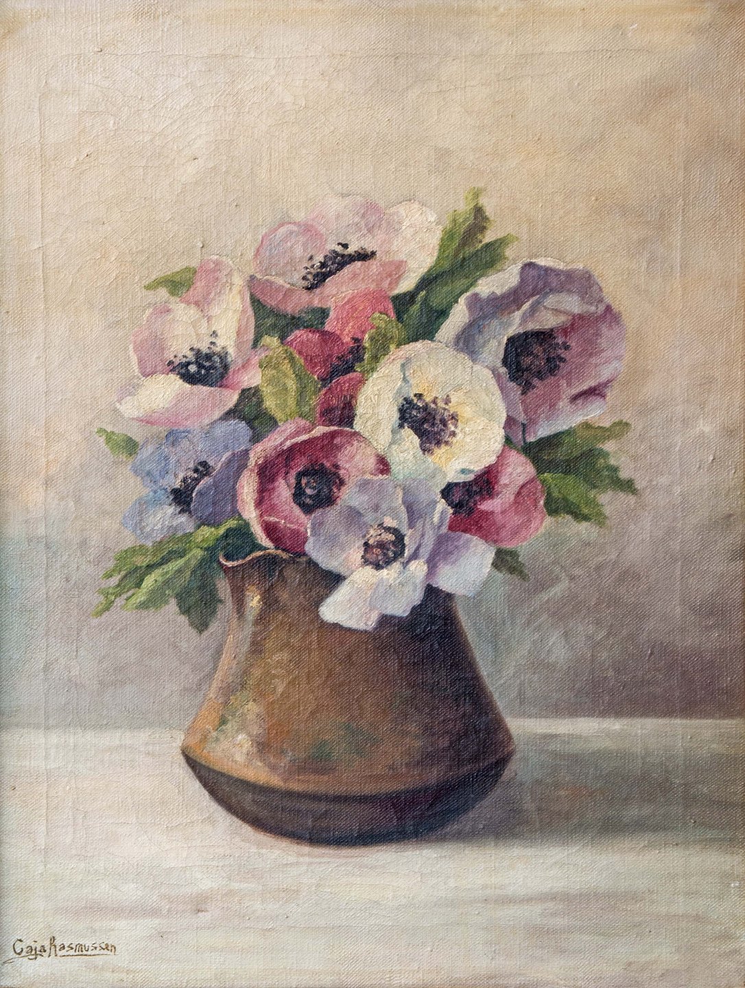 Maleri af blomster opsats, stilleben. Olie på lærred i guldramme