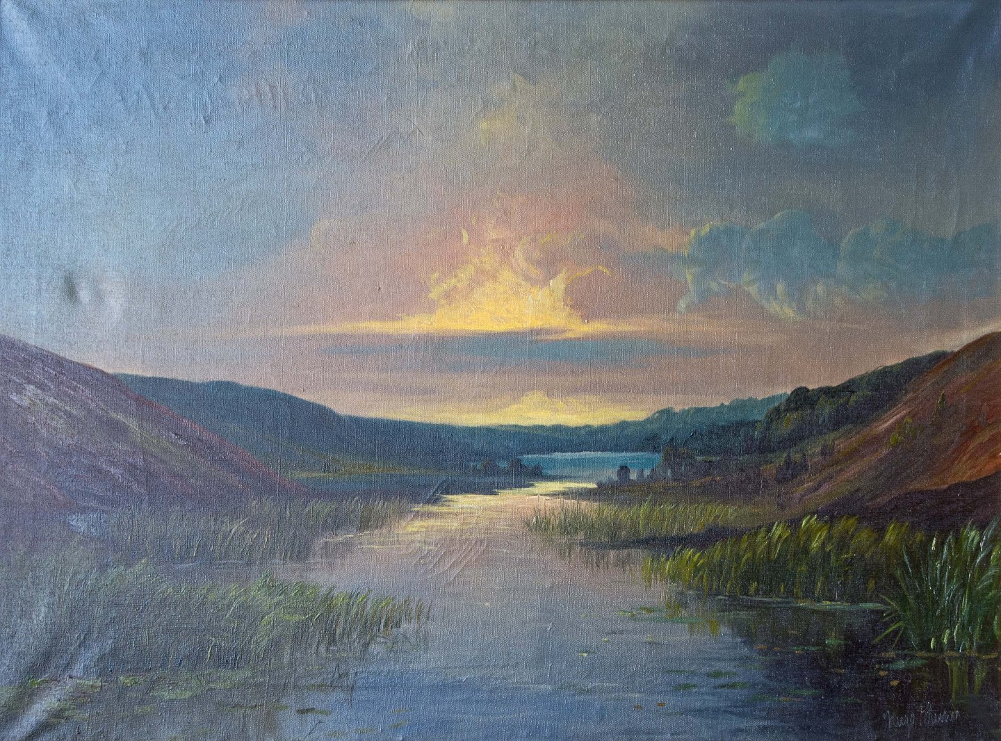 Maleriet måler i højde 85 cm og bredde 108 cm