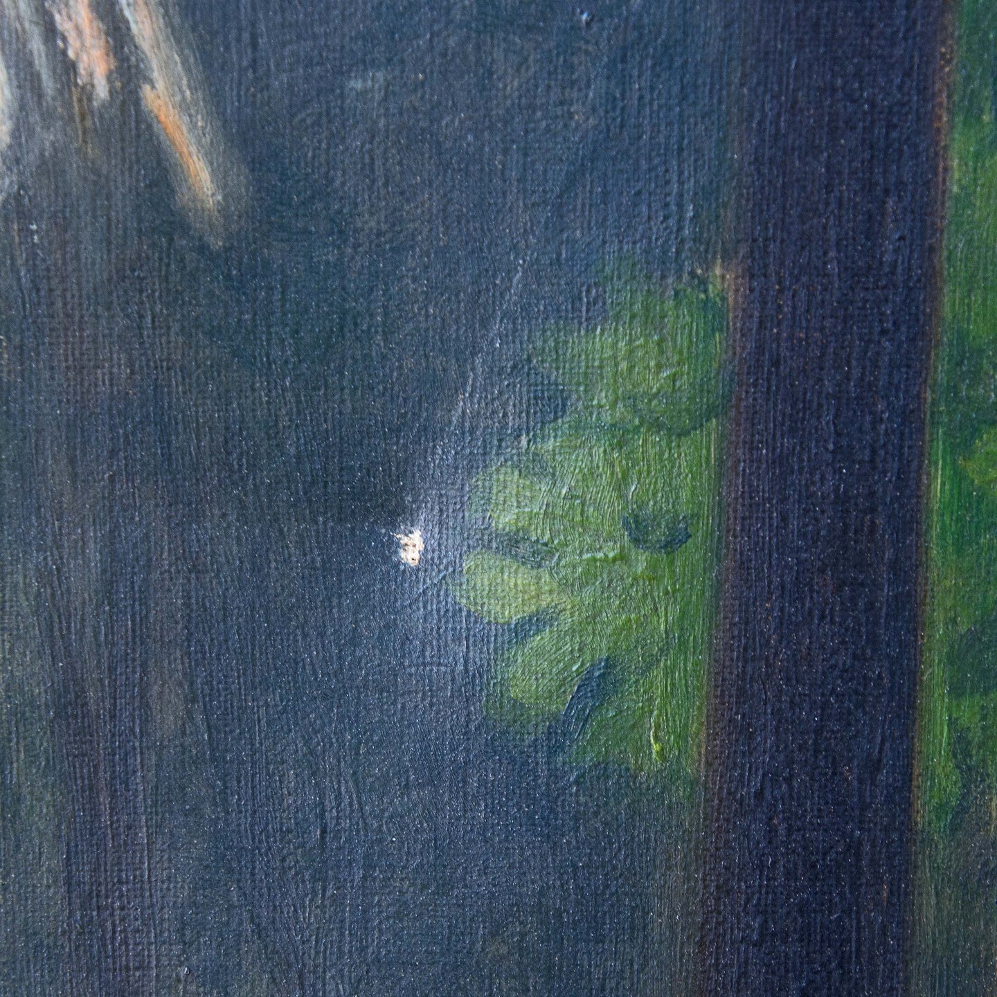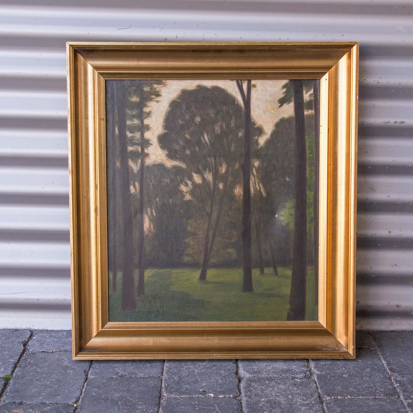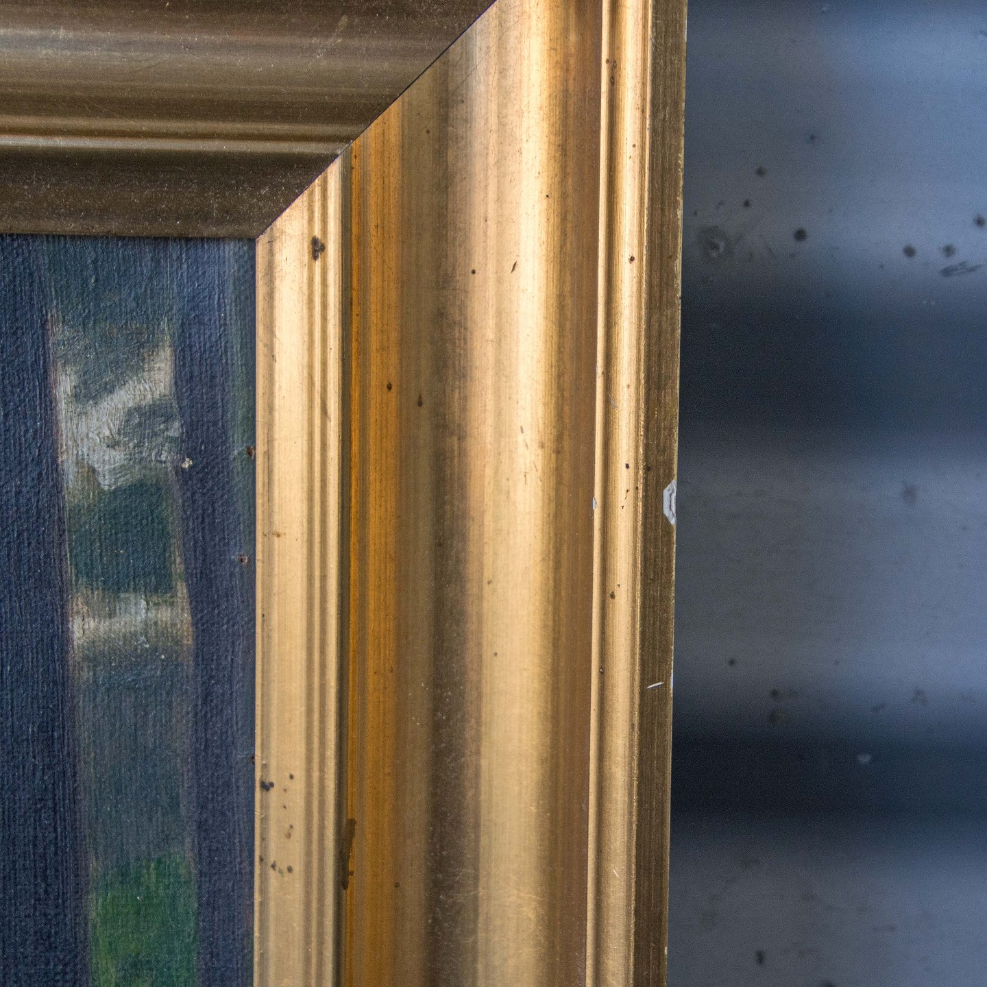 Lærred har fået et punkt pres ellers i god stand. Brugspor på rammen.