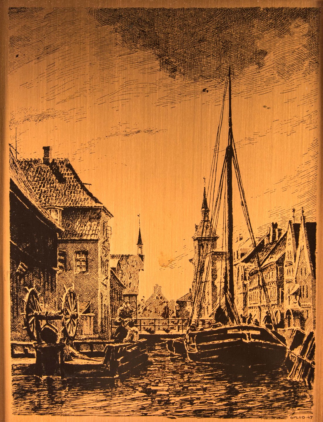 Kobbertryk med motiv af Østerå i Aalborg nr. 250 af 500