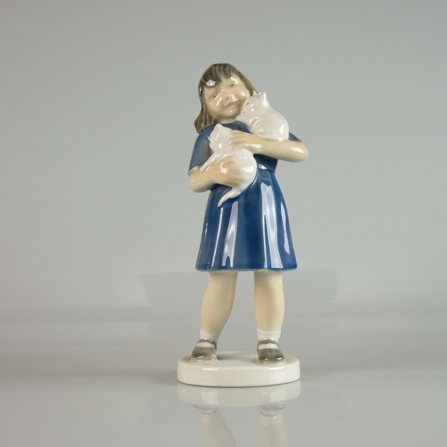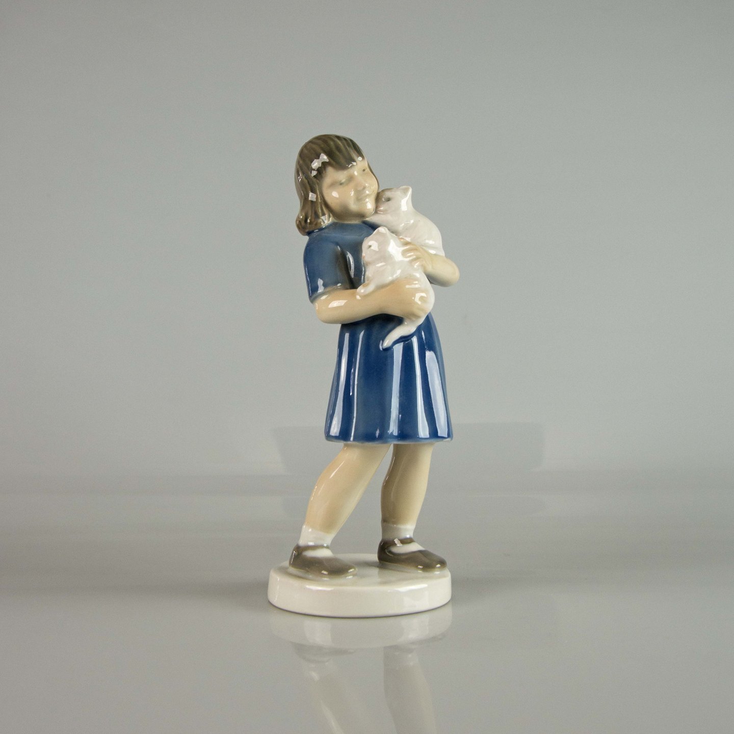 Figur i porcelæn med motiv af pige med to killinger nr. 2276