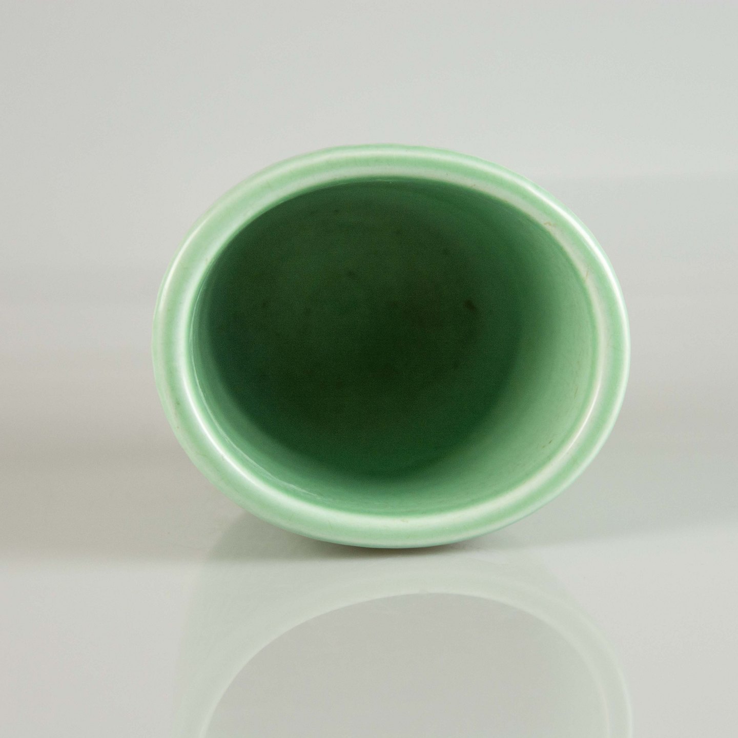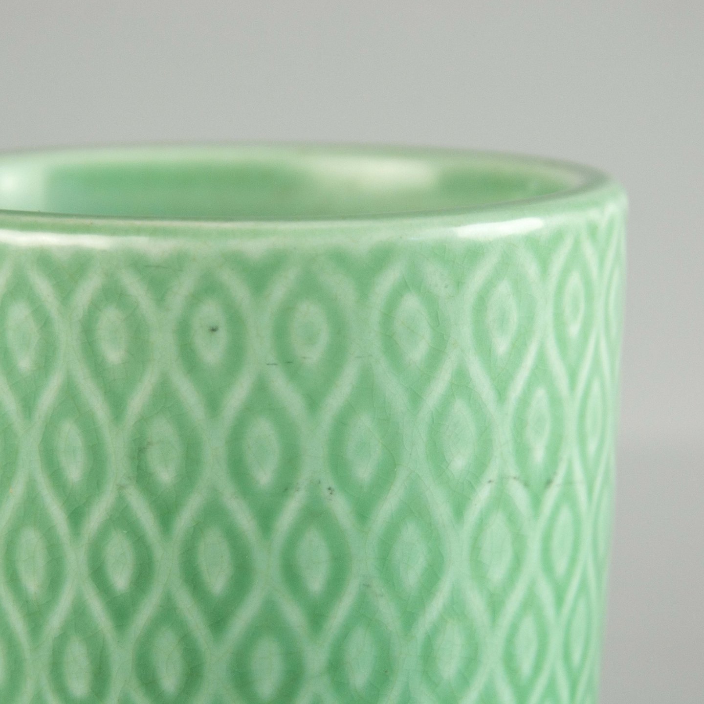 Oval mintgrøn Marselis vase i fajance med bladmotiv nr. 2639