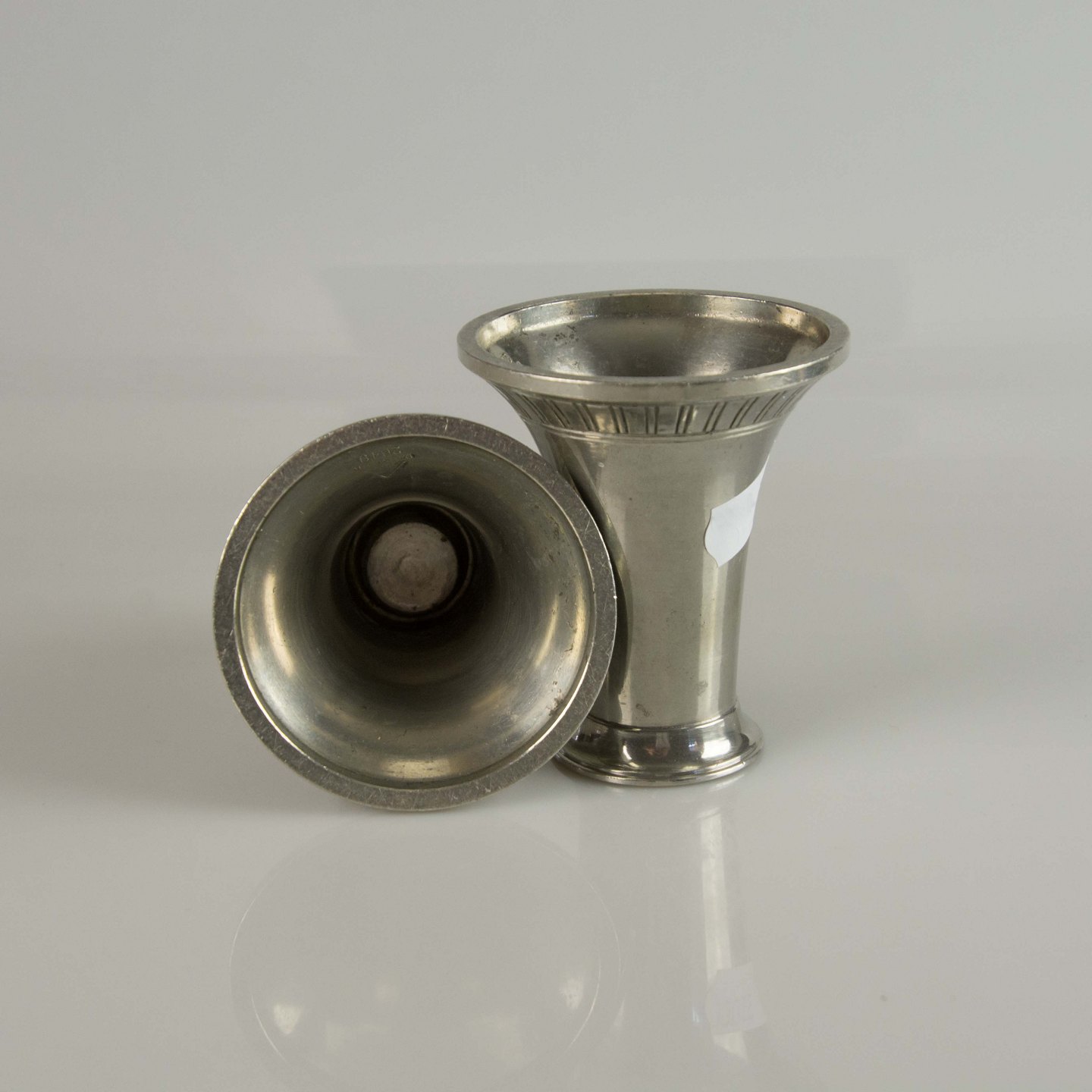 Lysestager i tin med kantet mønster ved fod nr. 2649