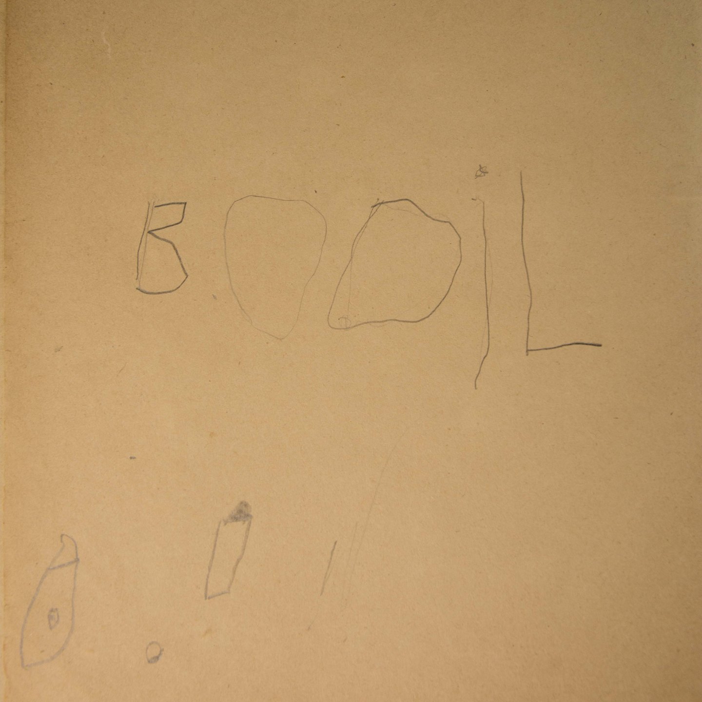 Slidt omslag med indvendige brugsspor - tekst med blyant