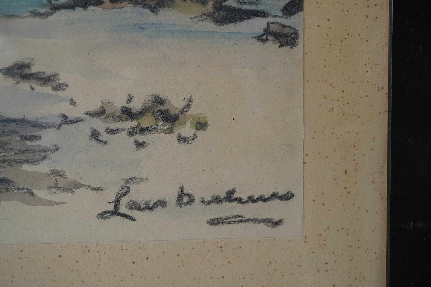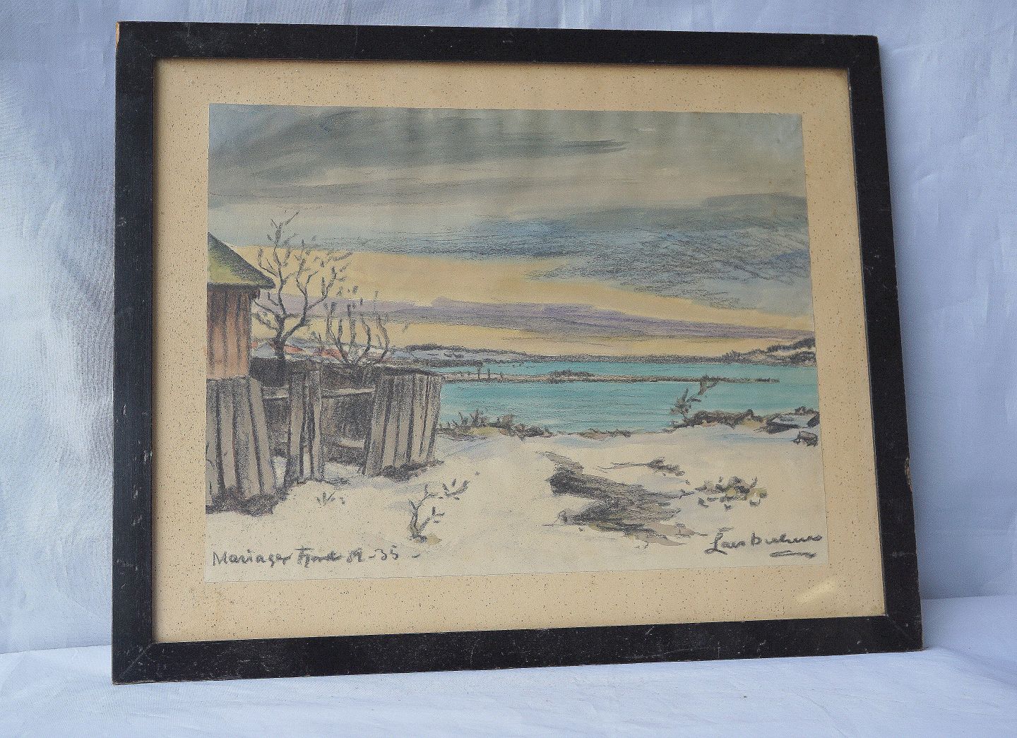 Mariager Fjord 1935. Akvarel ud med vue ud over Mariager Fjord 1935, kunstner Lars Nielsen