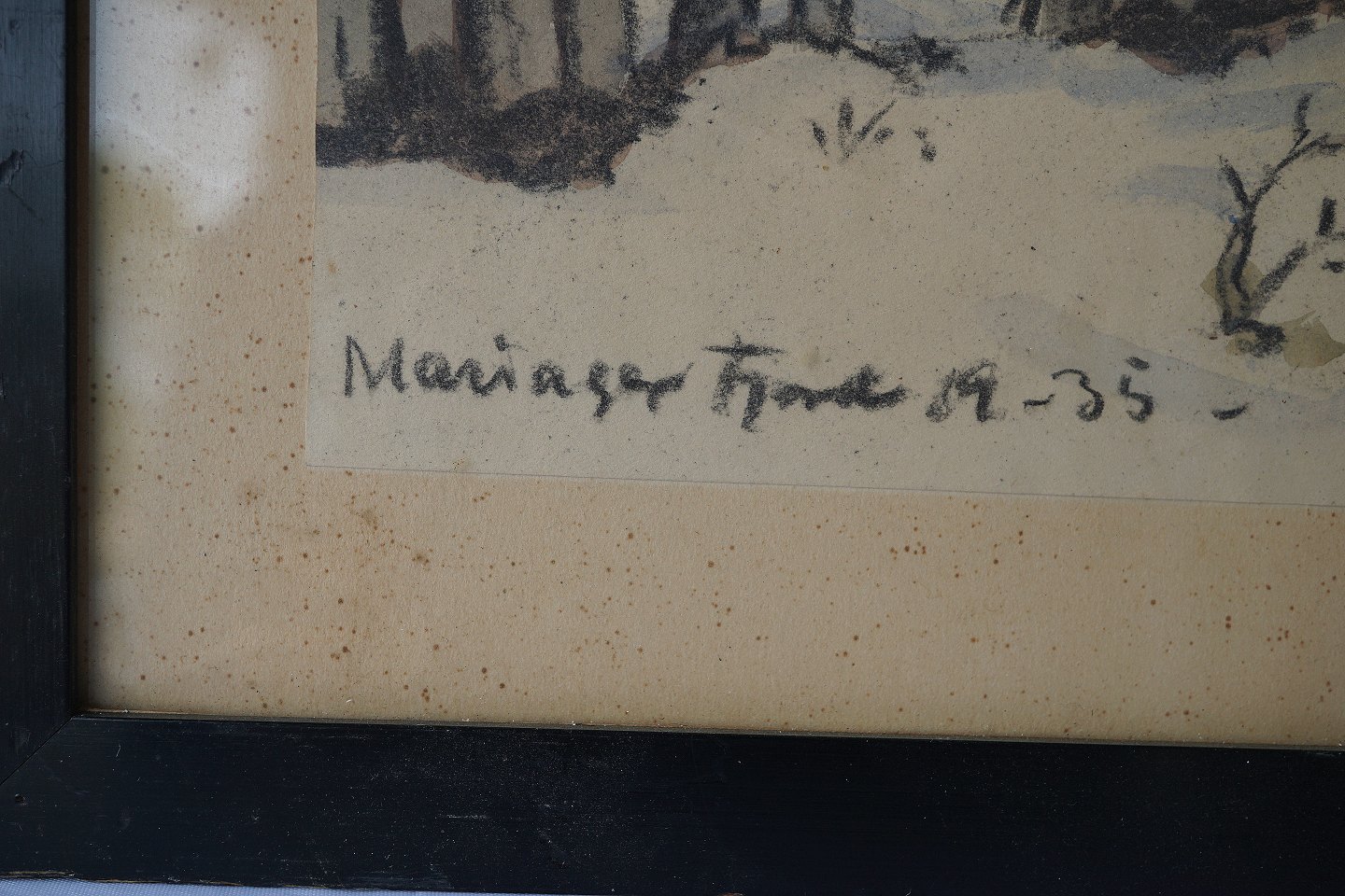 Herman Axelsen akvarel Stråtægt gård 32,5 cm