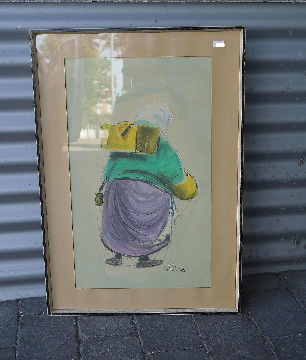 Lise Færch tegning Kvinde og sprutte 43,5 cm