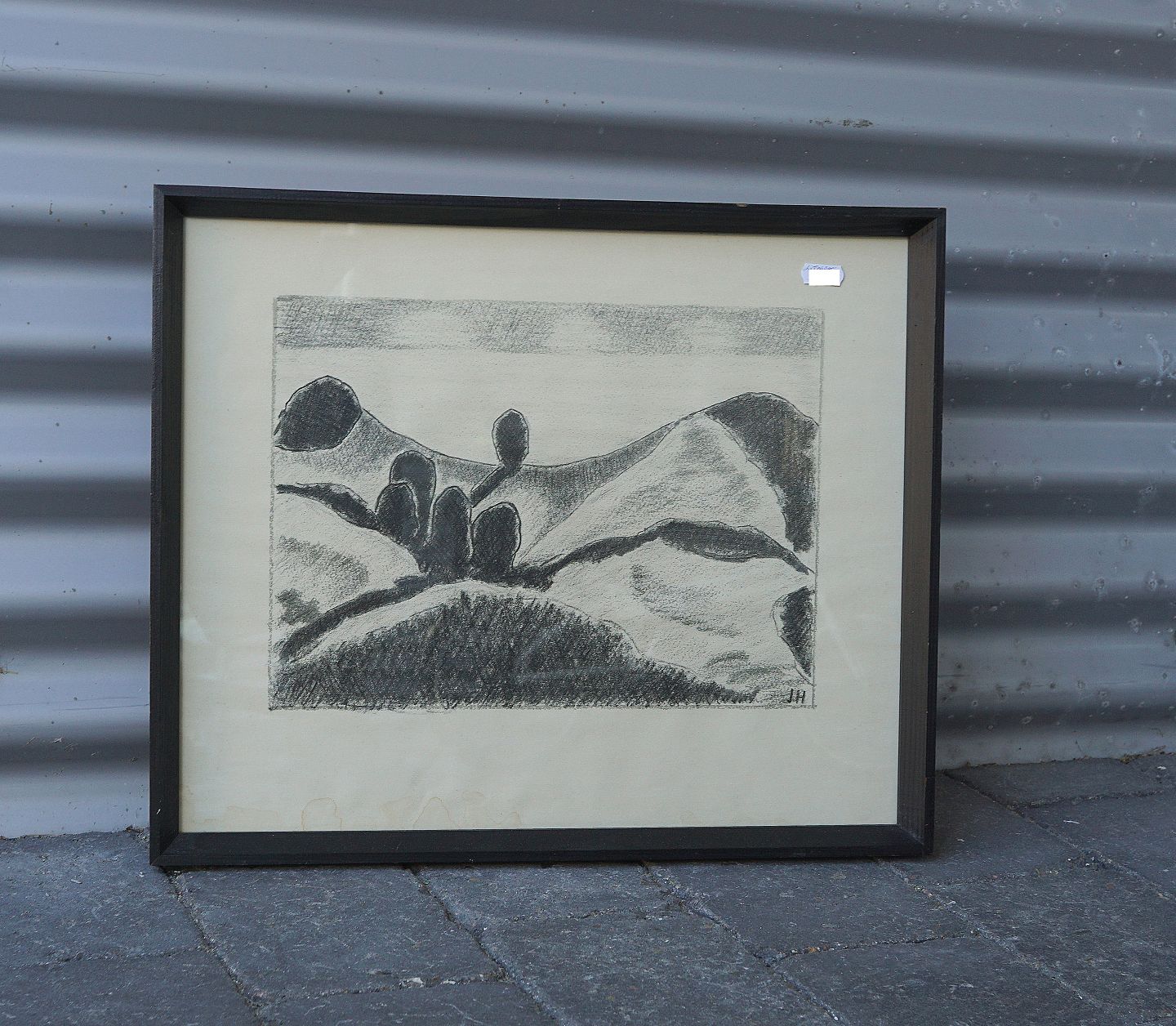 Indrammet tryk i sort træramme med motiv af klitter ved hav