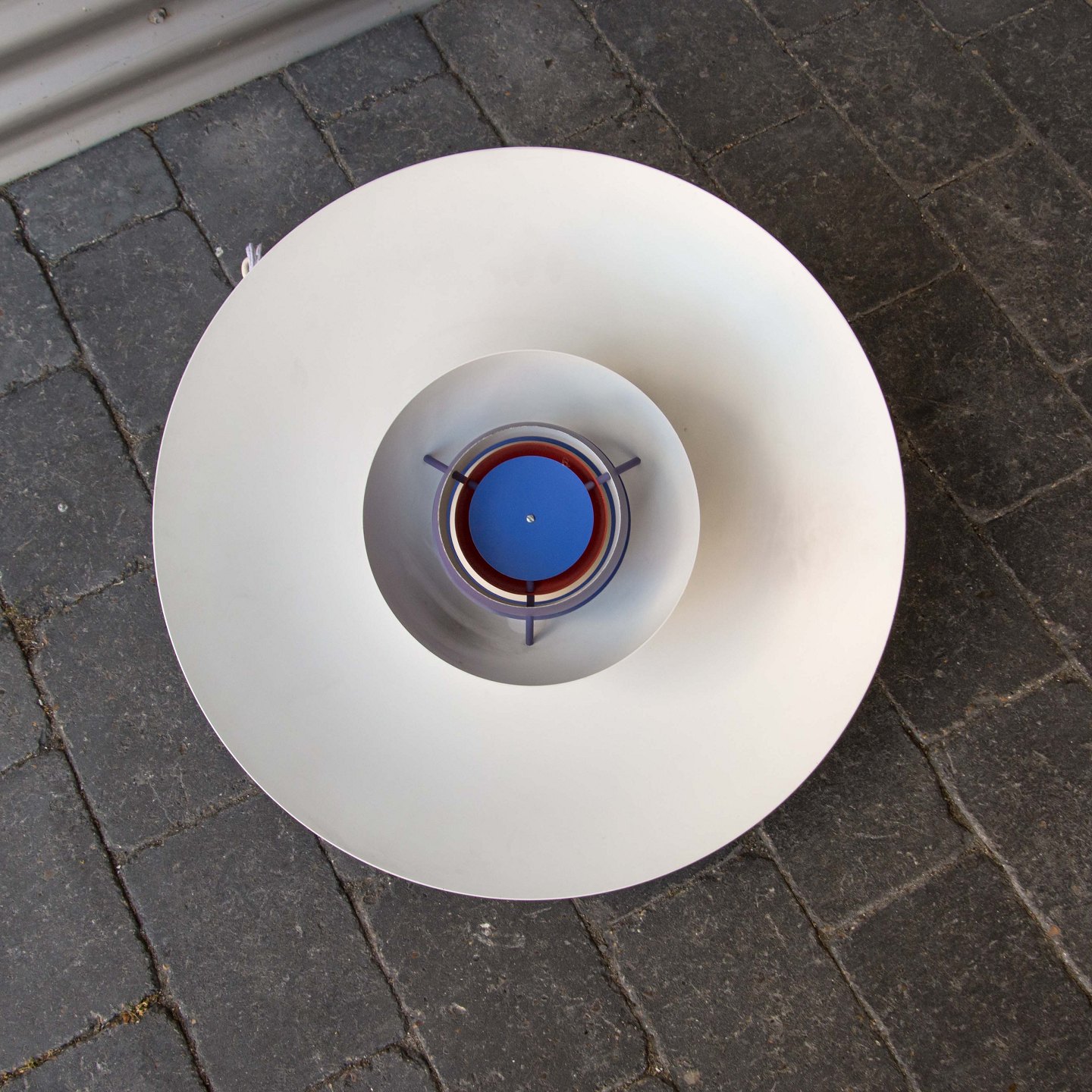 Lampen er på en mindre del af indersiden blå- og orangelakeret.